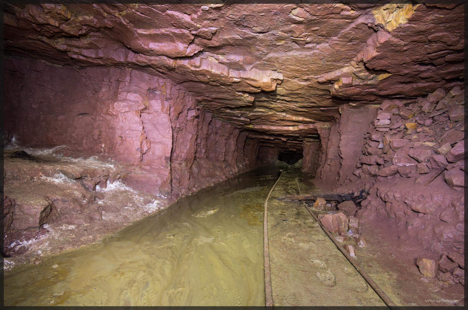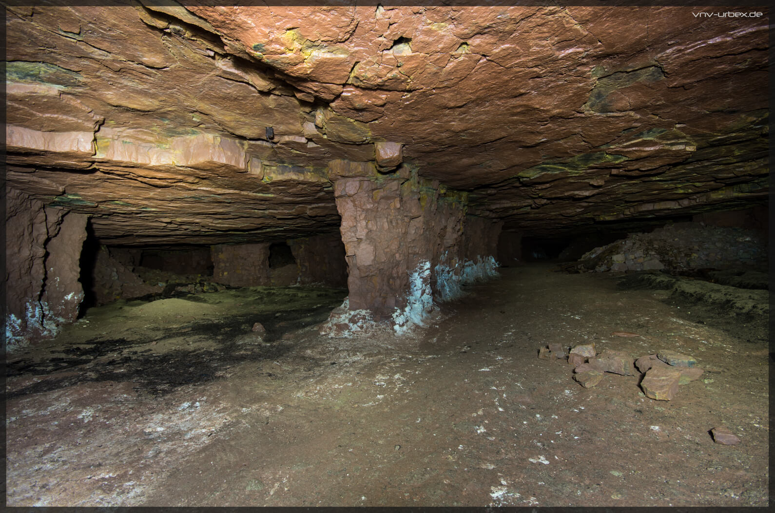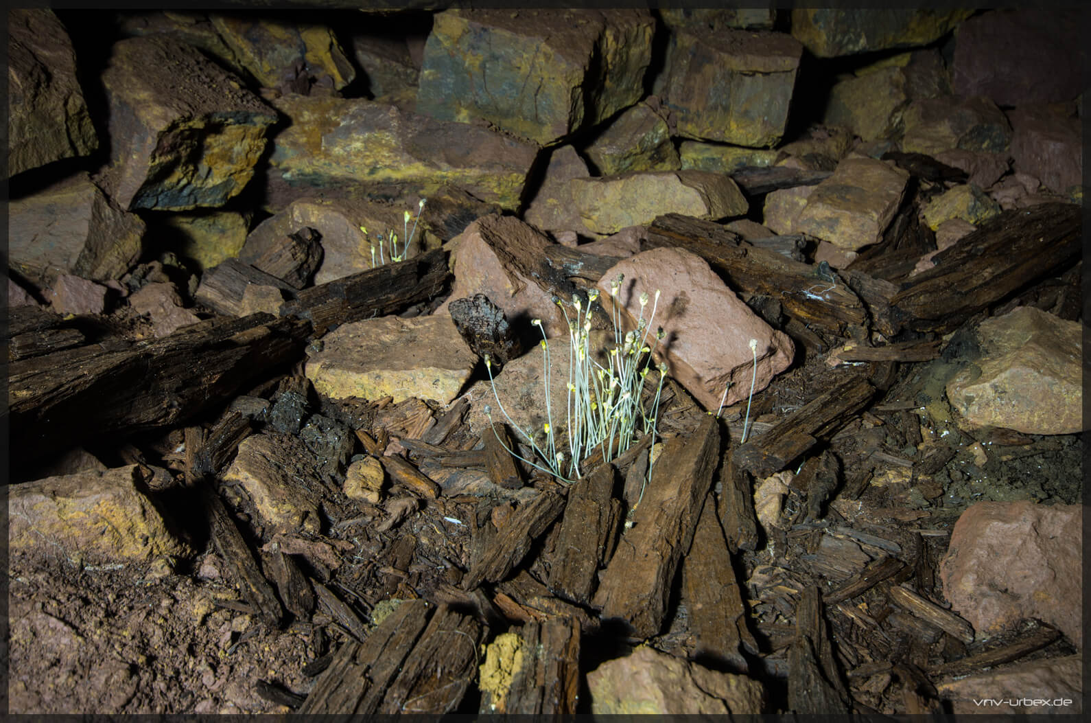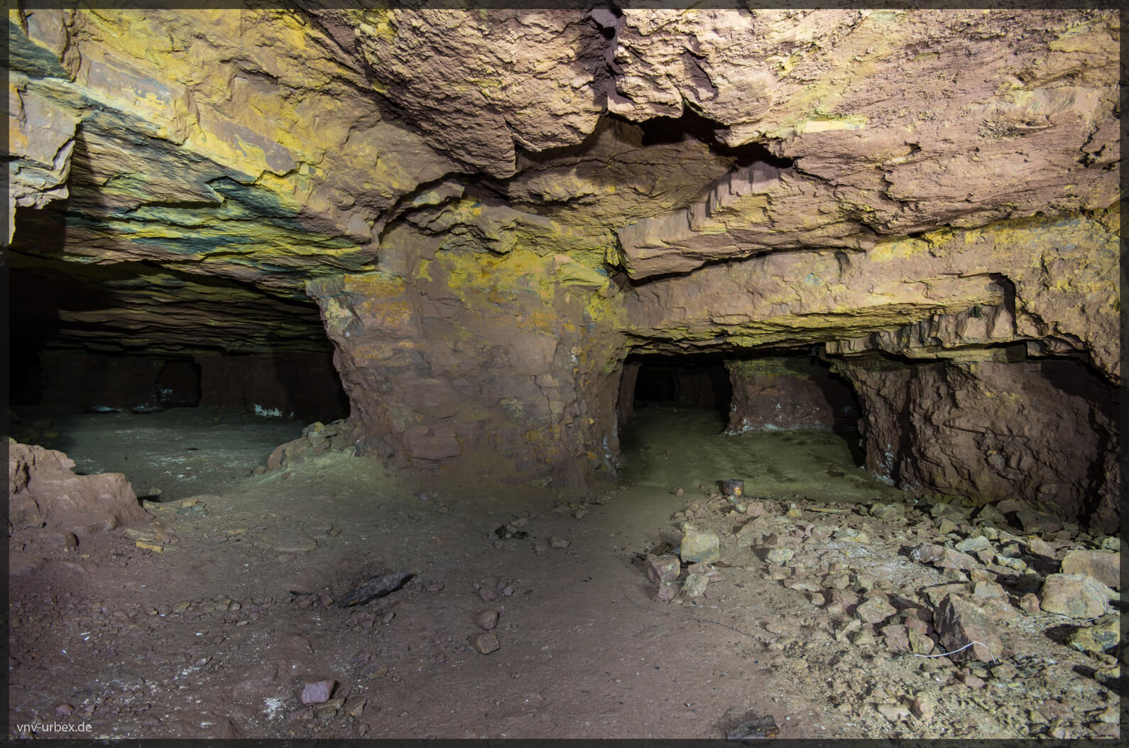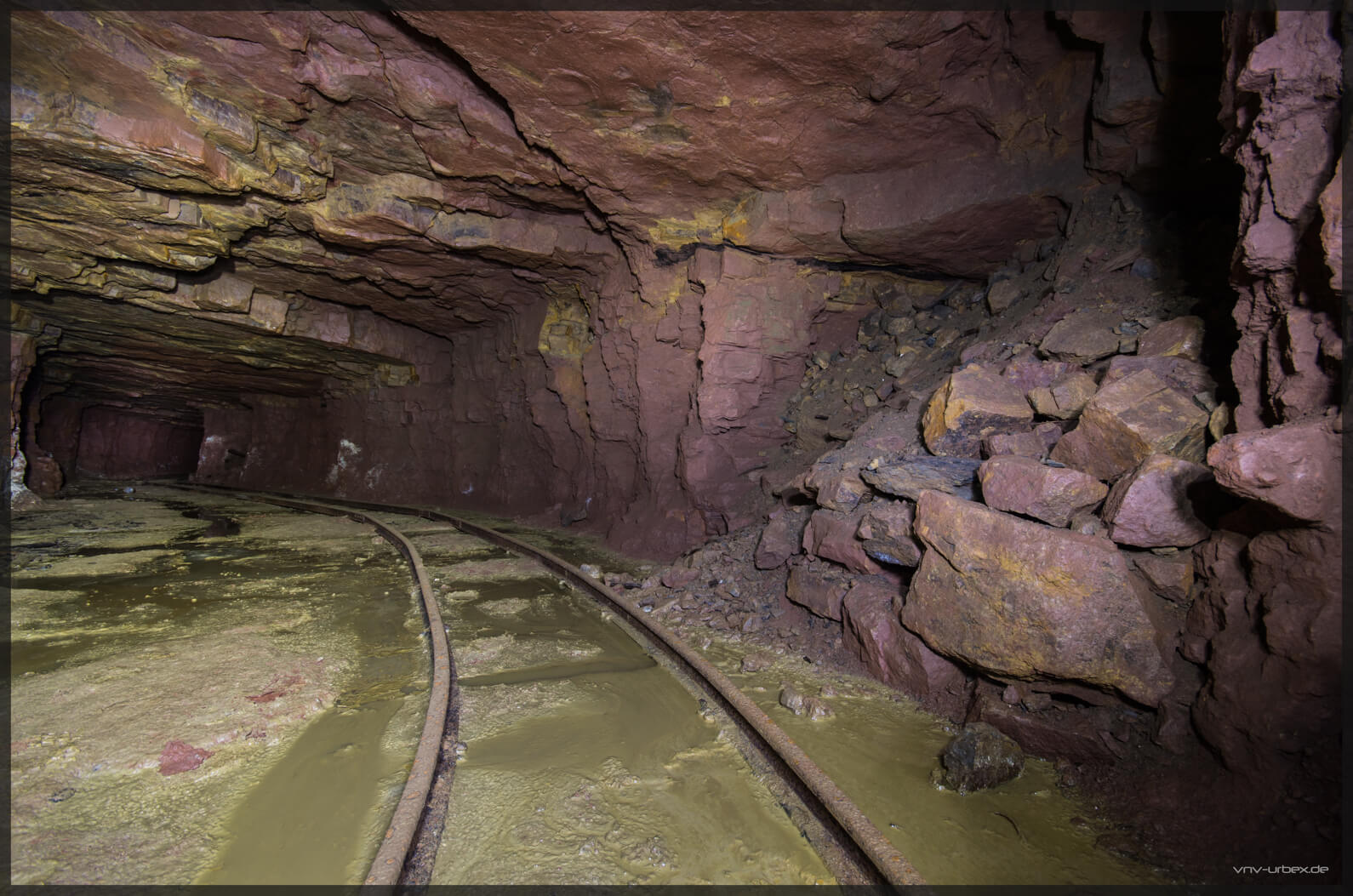 Diese schöne und nahezu unberührte Doggererz Grube befindet sich tief im Schwarzwald, ein wirklich farbiger Platz unter der Erde. Die Grube war nur 7 Jahre aktiv in Betrieb, doch für diese kurze Zeit war der Vortrieb relativ groß. Einige Jahre nach der Schließung wurde noch versucht, eine Pilzfarm dort einzurichten, was aber auch nach kurzer Zeit eingestellt wurde. Heute liegt die gesamte Grube im Dornröschenschlaf und ein Marder hat sich häuslich eingerichtet. Die liegende Doggerscholle erreichte hier eine Mächtigkeit von 2 m. Ich habe der Grube einfach den Name „Grube Kunterbunt“ gegeben, da hier wirklich viele lebendige Farben von den Wänden leuchten.