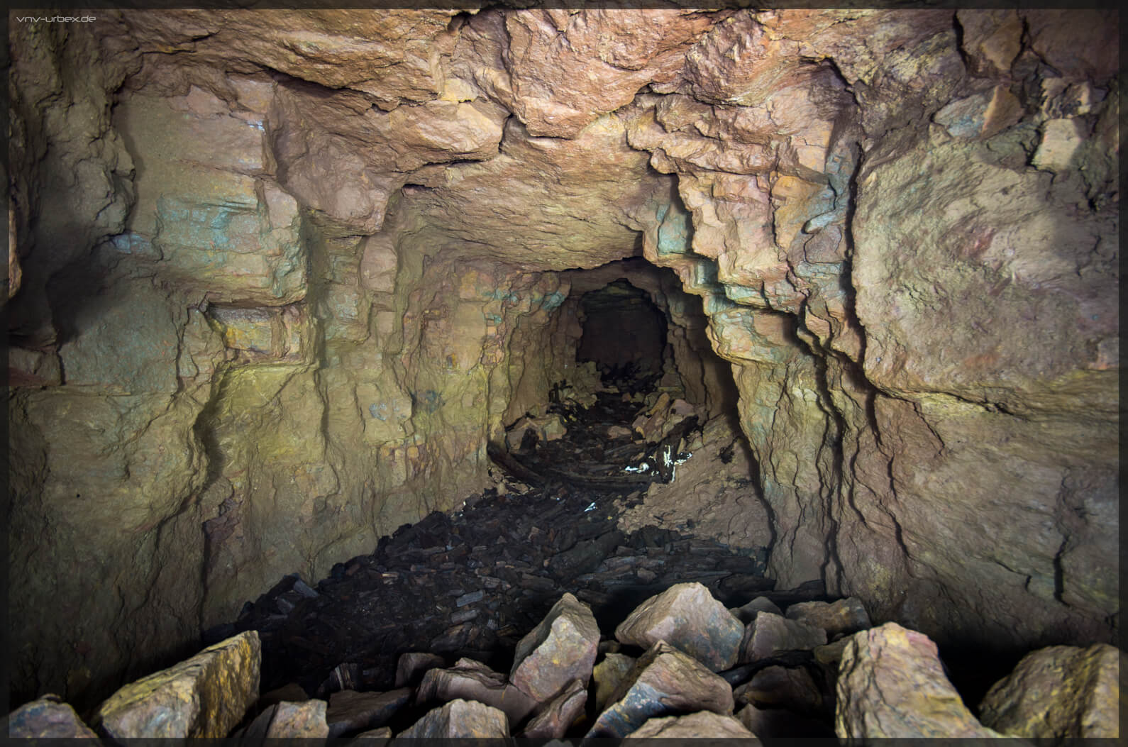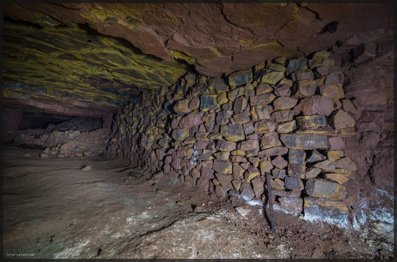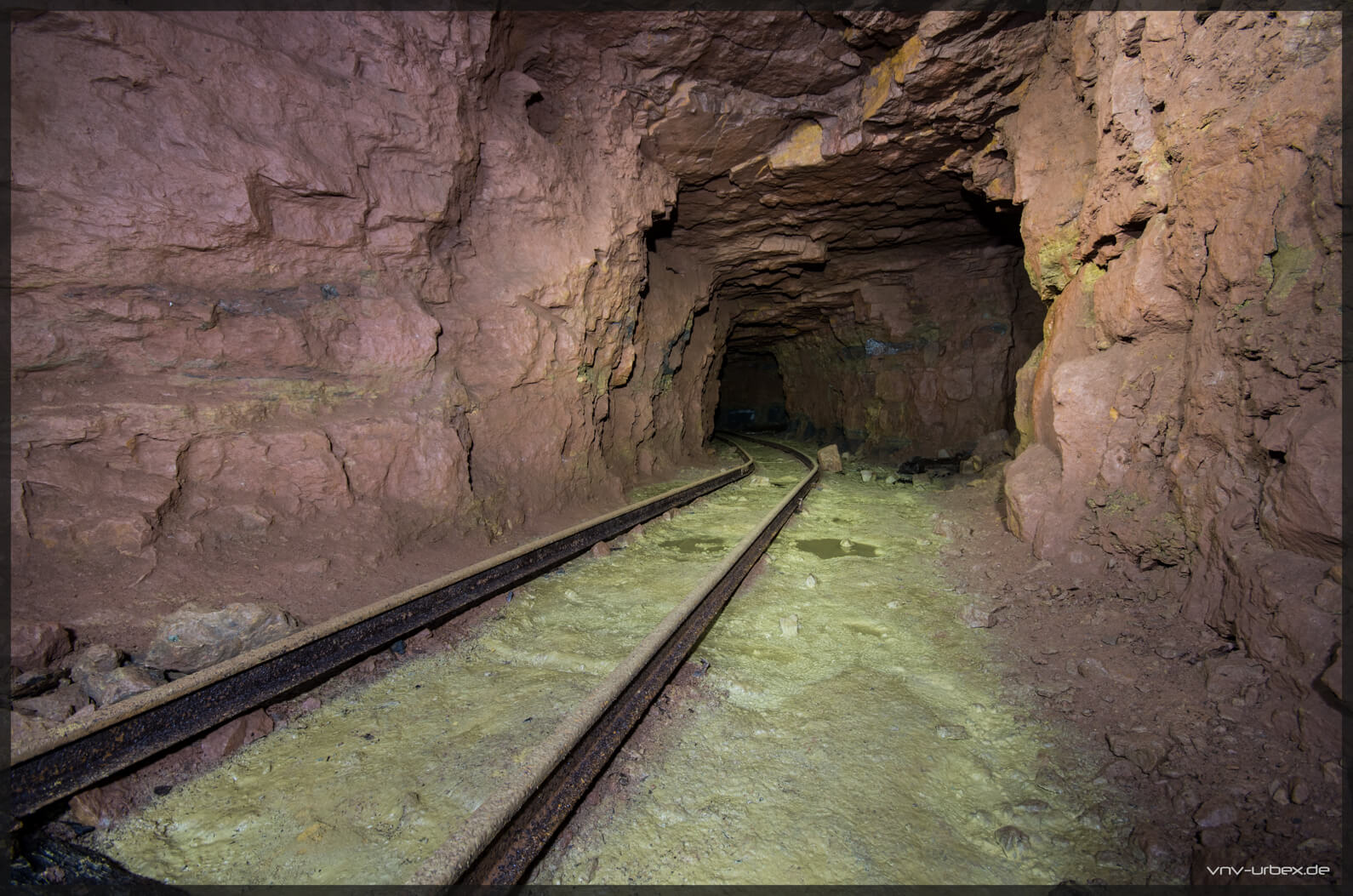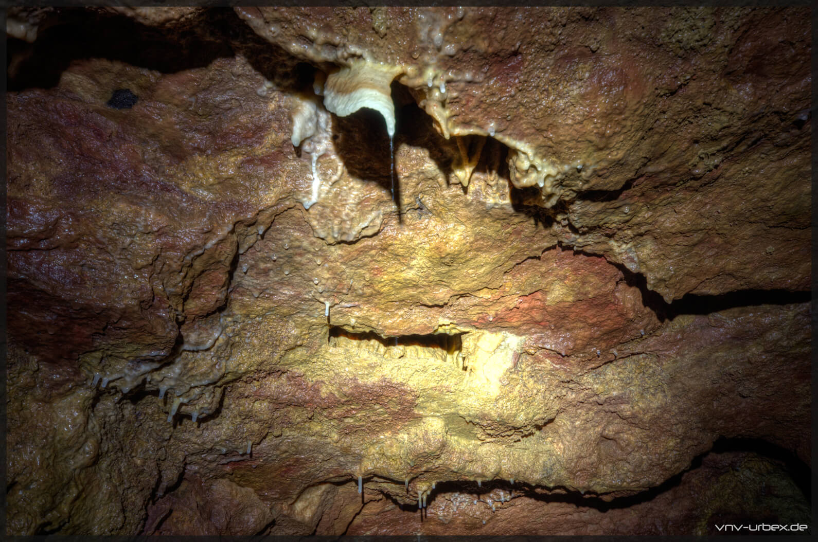 Diese schöne und nahezu unberührte Doggererz Grube befindet sich tief im Schwarzwald, ein wirklich farbiger Platz unter der Erde. Die Grube war nur 7 Jahre aktiv in Betrieb, doch für diese kurze Zeit war der Vortrieb relativ groß. Einige Jahre nach der Schließung wurde noch versucht, eine Pilzfarm dort einzurichten, was aber auch nach kurzer Zeit eingestellt wurde. Heute liegt die gesamte Grube im Dornröschenschlaf und ein Marder hat sich häuslich eingerichtet. Die liegende Doggerscholle erreichte hier eine Mächtigkeit von 2 m. Ich habe der Grube einfach den Name „Grube Kunterbunt“ gegeben, da hier wirklich viele lebendige Farben von den Wänden leuchten.
