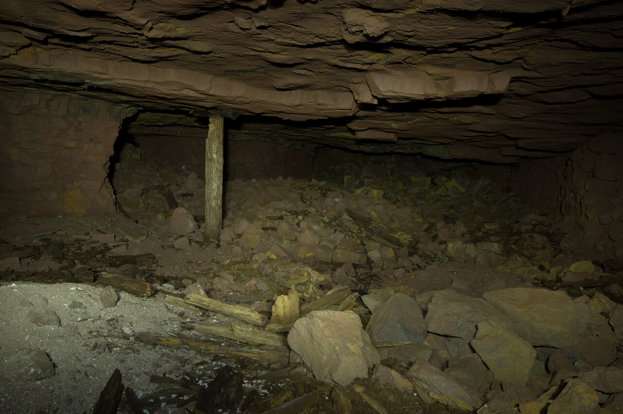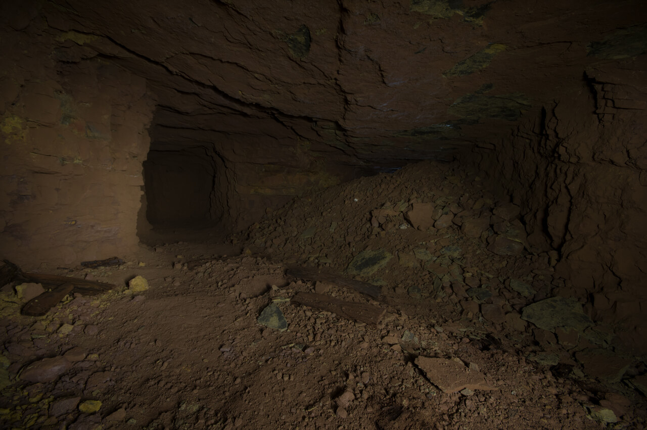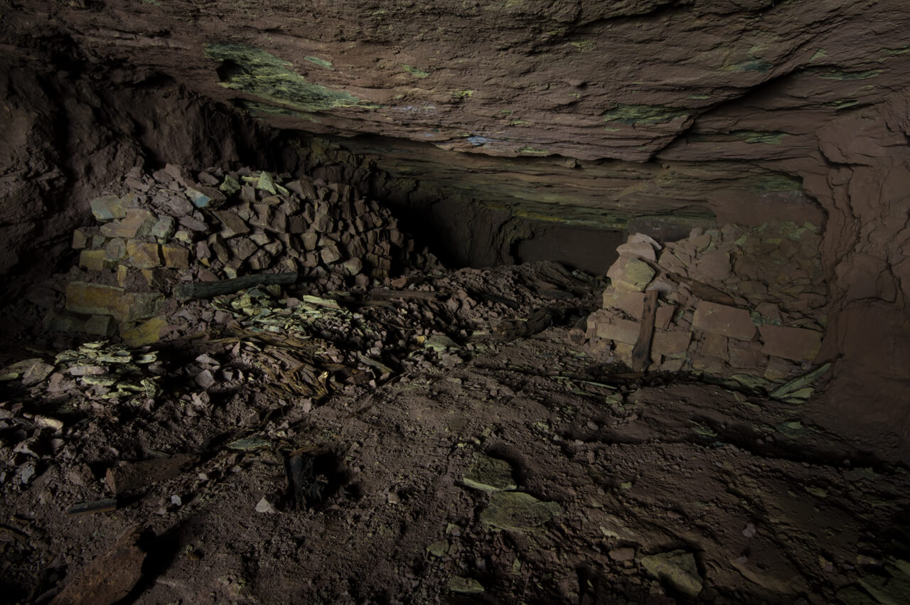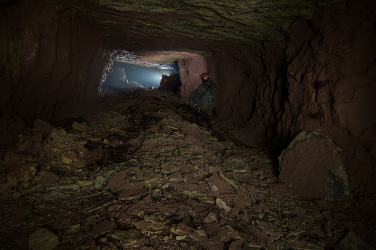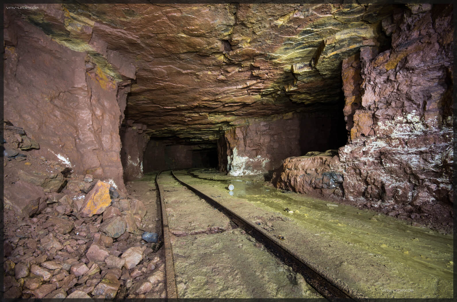 Diese schöne und nahezu unberührte Doggererz Grube befindet sich tief im Schwarzwald, ein wirklich farbiger Platz unter der Erde. Die Grube war nur 7 Jahre aktiv in Betrieb, doch für diese kurze Zeit war der Vortrieb relativ groß. Einige Jahre nach der Schließung wurde noch versucht, eine Pilzfarm dort einzurichten, was aber auch nach kurzer Zeit eingestellt wurde. Heute liegt die gesamte Grube im Dornröschenschlaf und ein Marder hat sich häuslich eingerichtet. Die liegende Doggerscholle erreichte hier eine Mächtigkeit von 2 m. Ich habe der Grube einfach den Name „Grube Kunterbunt“ gegeben, da hier wirklich viele lebendige Farben von den Wänden leuchten.