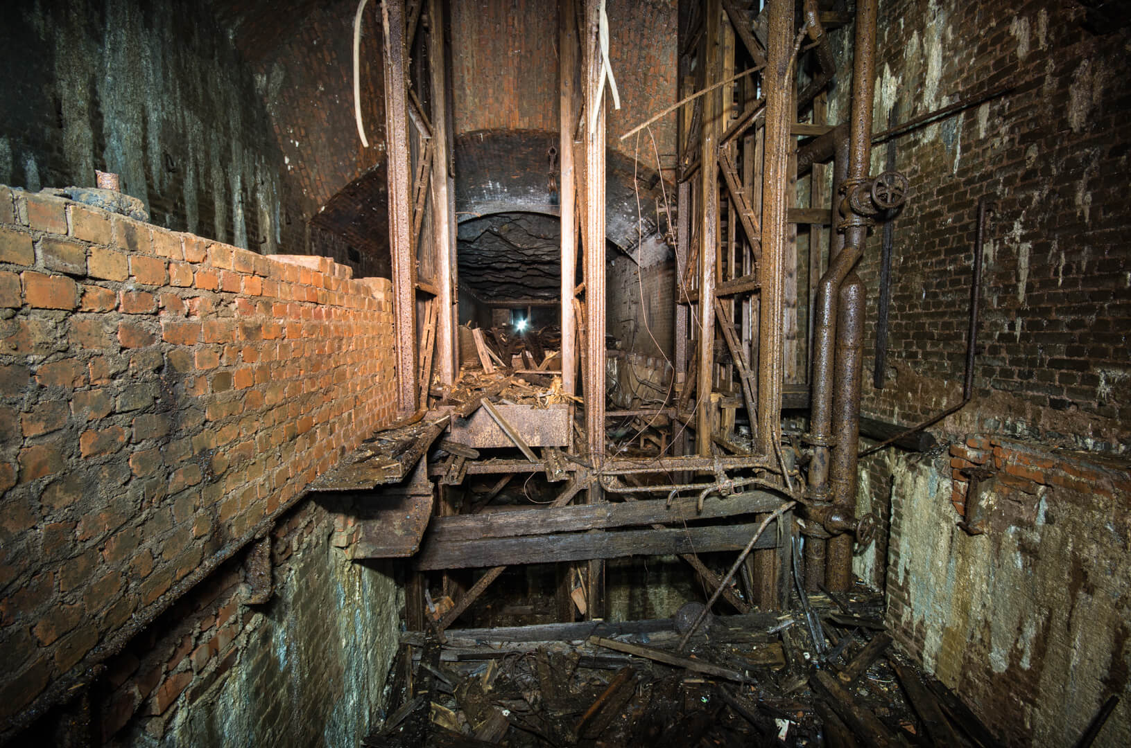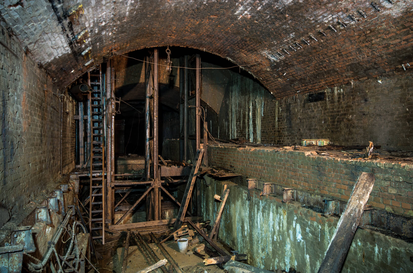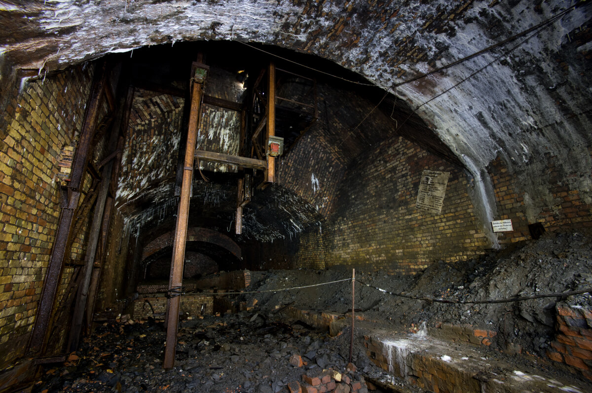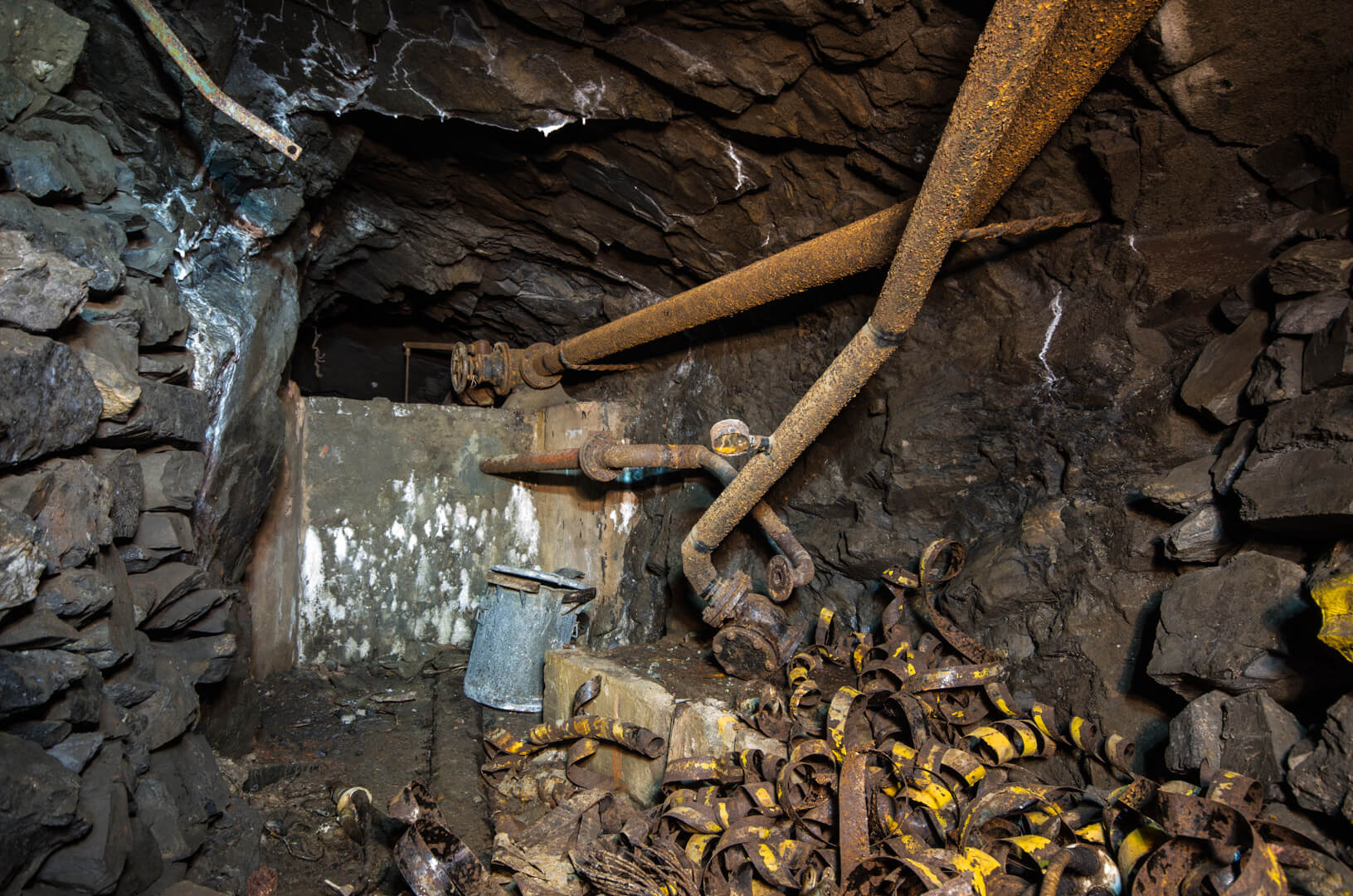 Das Erzbergwerk reiht sich ganz vorn in meine Befahrungen ein. Die Grube gefiel mir damals auf Anhieb. Direkt nach dem Einfahren auf der Mittelstollen-Sohle bewegte ich mich auf den Füllort zu. Vor mir tauchten als erstes die riesigen Rollenschnauzen des Erzbunkers auf. Zwei eng aneinander liegende Rollen aus Stahl, die ihre Schnauzen in die Strecke recken. Weiter hinten erschien im Lichtkegel der mächtige Blindschacht, welcher einst bis auf die 2. Tiefbausohle reichte. Die Erzrollen und der Blindschacht 1 stehen in einer großen, aus Ziegeln gemauerten Gewölbehalle. Untertägige Gewölbemauerungen in diesem Umfang sieht man nicht jeden Tag. Jede Ziegelreihe untermauerte die Wichtigkeit dieses Füllorts. Allerdings wusste ich zu diesem Zeitpunkt noch nicht, dass es noch besser kommen sollte.