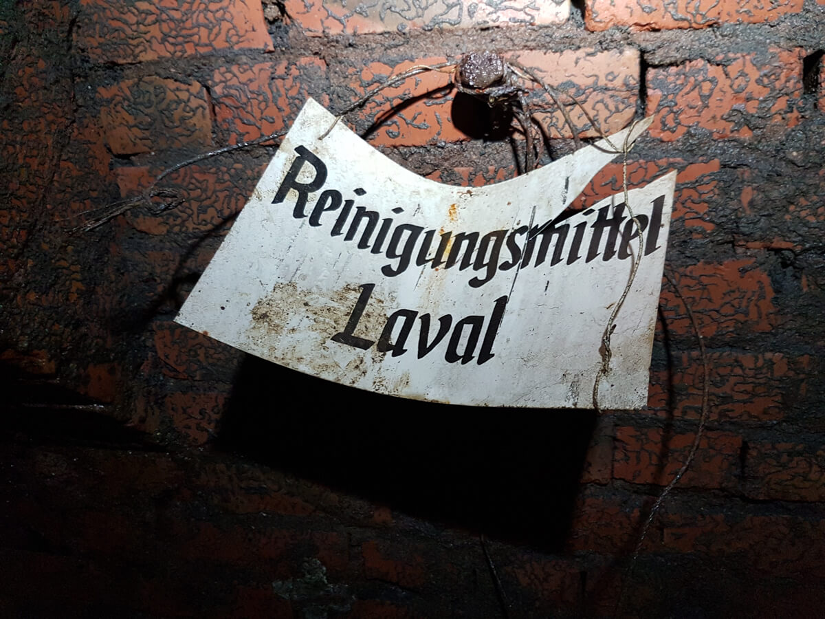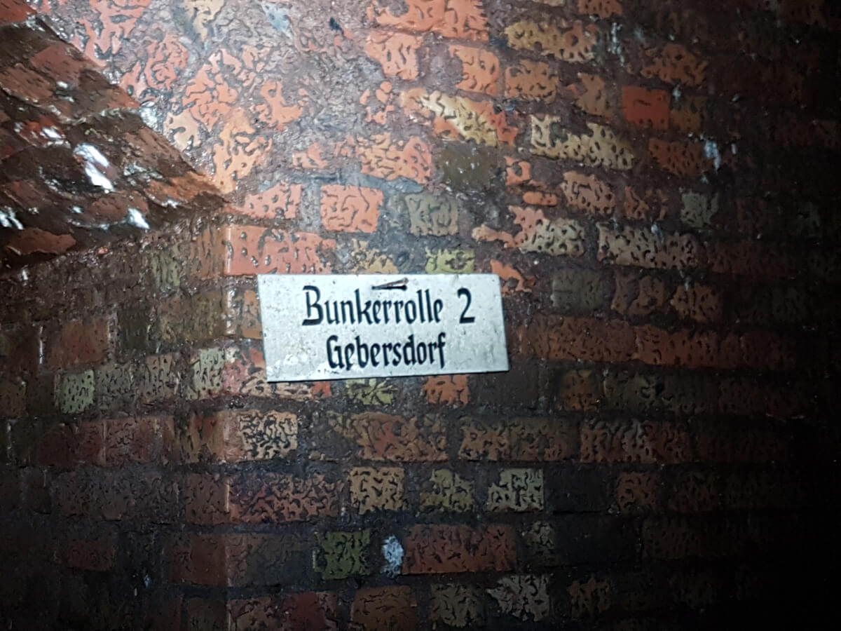 Leicht versetzt, aber dennoch genau über uns, befand sich die Bunkersohle. Viele Versuche diese zu erreichen, waren bisher gescheitert. Ein Aufstieg am Seil im Blindschacht 1 brachte nur die Erkenntnis, dass selbiger mit einer Betonplatte abgedeckt wurde und keine Möglichkeit zum Aufstieg bot. Der Versuch, eine Leiter durch die Rollenschnauzen des Erzbunkers zu bekommen, die lang genug war, stellte sich als ausweglos heraus. Viel zu hoch war der Erzbunker im Inneren. Die Wände aus harten und glatten Schlackensteinen boten keinerlei Halt.