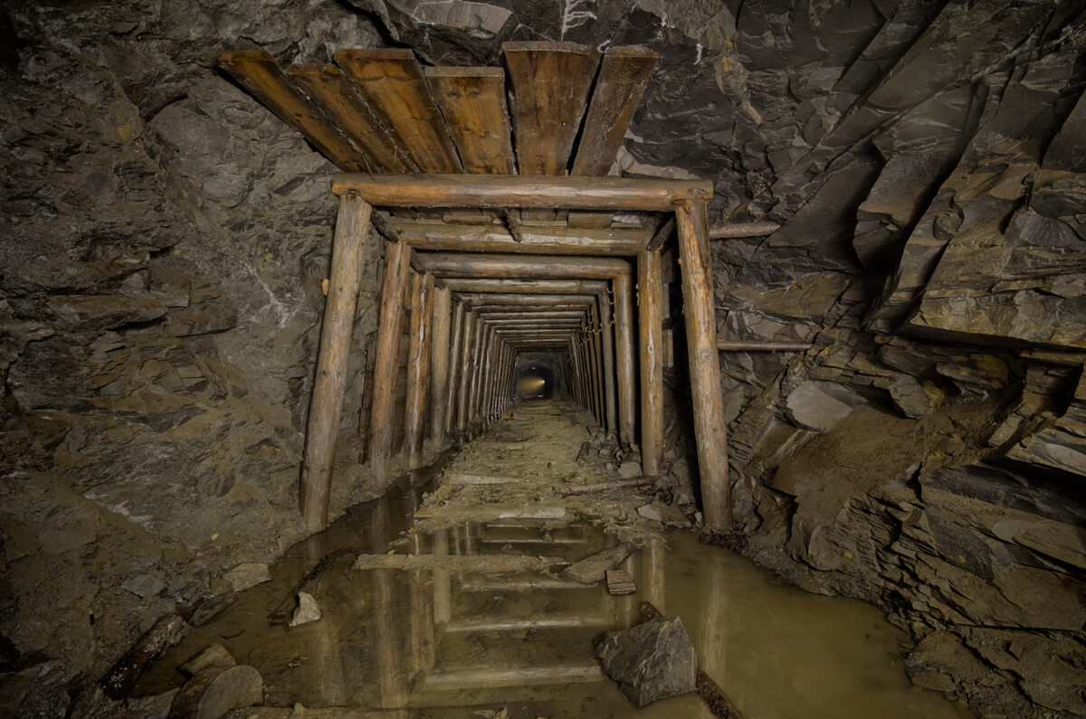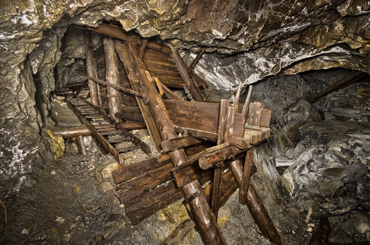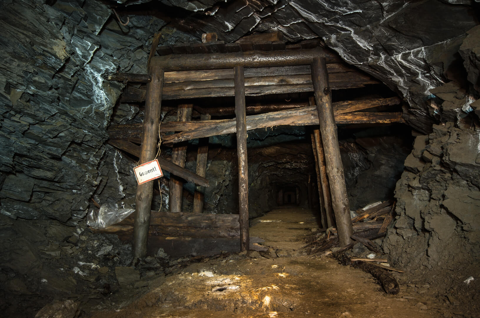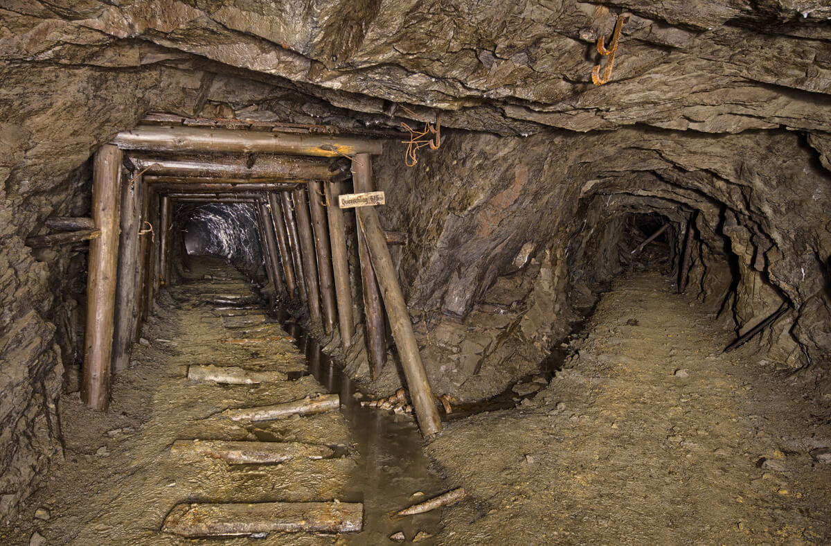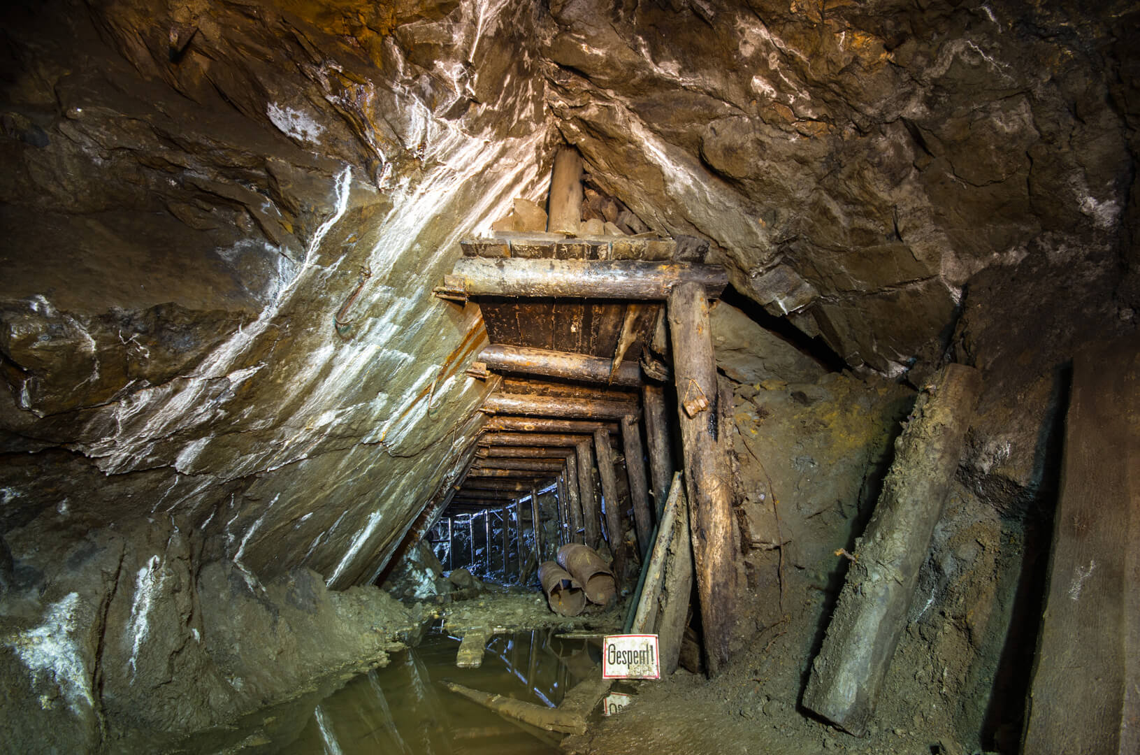 Weg von der Bunkersohle und Mittelstollen Sohle hin zu den anderen Sohlen der Eisenerzgrube. Die Bergstollen-Sohle bot mir wunderbare Einblicke in den deutschen Türstockausbau. Es fanden sich etliche Streckenmeter, welche mit Türstöcken ausgebaut wurden. Der Türstockausbau unterteilt sich in drei Ausführungen. Als Erstes wäre der deutsche Türstock zu nennen, wie er auf den folgenden Bildern zu sehen ist. Dann sind noch der polnische und der schwedische Türstock zu nennen. Alle drei Arten unterscheiden sich in der Verbindung zwischen Kappe und Stempel. Die Anwendung der unterschiedlichen Arten hängt von der Richtung des aufzunehmenden Drucks ab. Eins haben jedoch alle drei Arten gemeinsam. Sie bestehen aus einer Kappe und den Stempeln (Beinen). Wer sich in das Thema Ausbau etwas einlesen möchte, dem empfehle ich den Heftband „Der Erzbergmann“ von Alfons Schwieczek. In diesem Fall das Heft 10 – Grubenausbau.