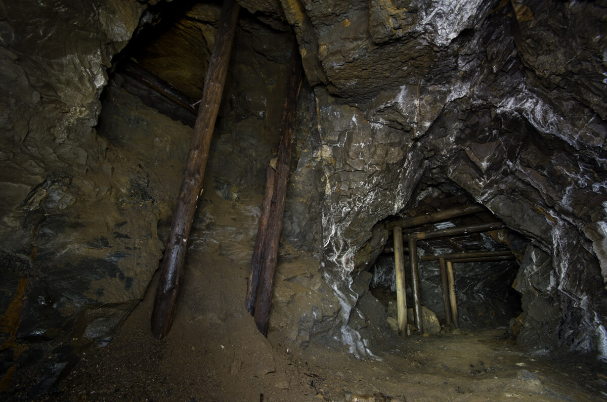 Diese Stelle im Abbau mit der Lore am Rollenloch hat mir ganz besonders gefallen, man beachte die wunderschönen weiß-blauen Versinterungen an der Firste und am Rollenloch. Ein wunderbares Plätzchen hier, tief unter der Erde.
