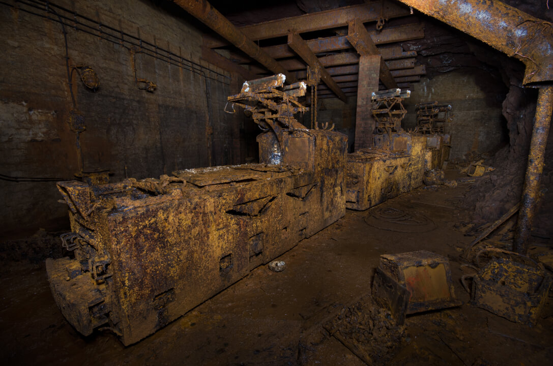 Der Lokschuppen beziehungsweise die Werkstatt beeindruckte mich am meisten. Hier standen noch vier abgestellte Lokomotiven, die vollständig verrostet waren. Ursache dafür war, dass diese Sohle über längere Zeit hinweg vollständig unter Wasser stand – doch das ist eine andere Geschichte.
