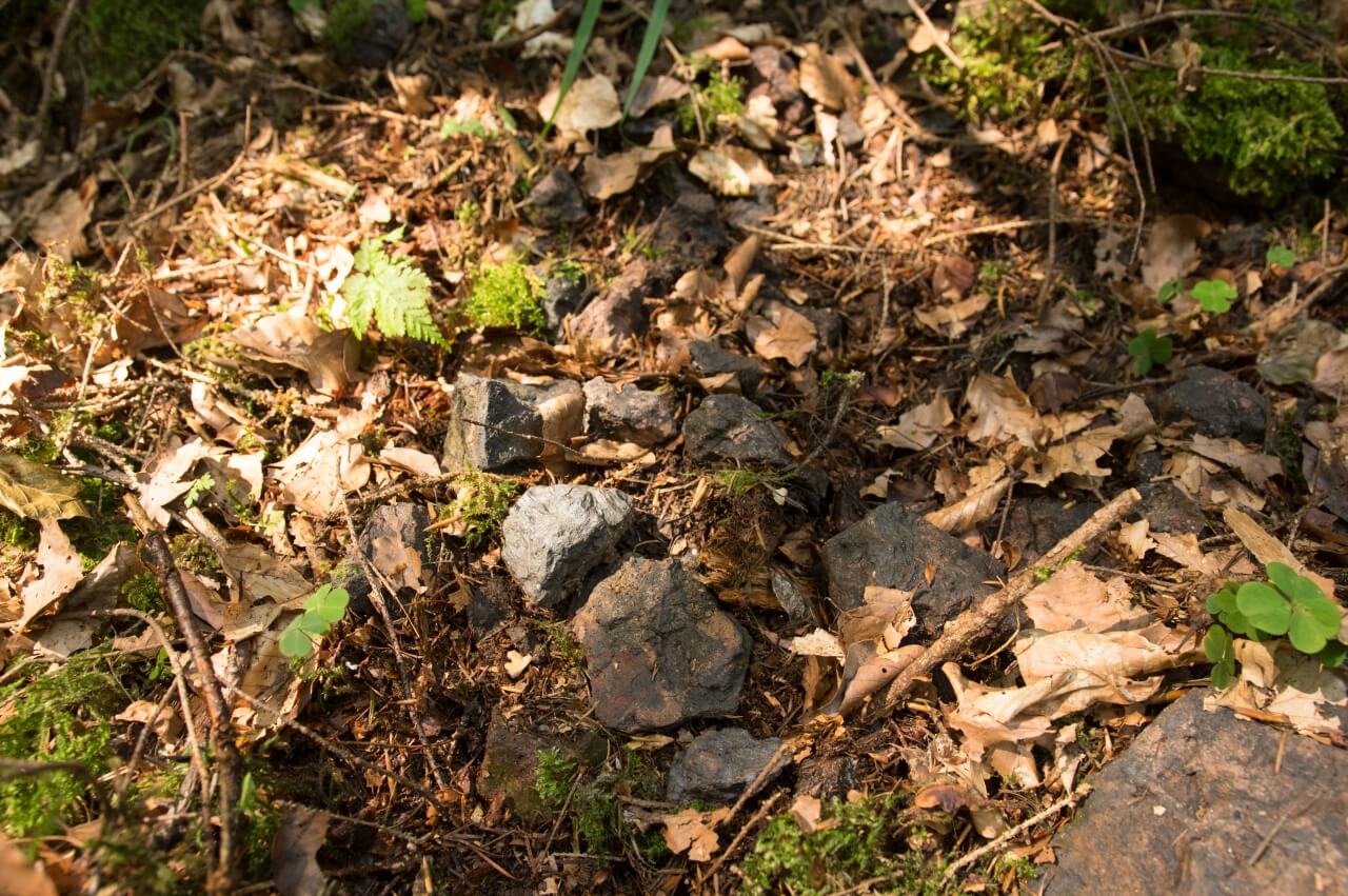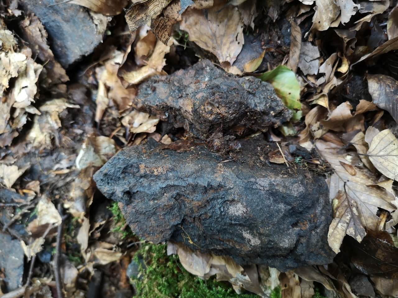 Die Kartenrecherche brachte schnell vielversprechende Suchansätze, an denen wir vor Ort ansetzen konnten. Im Gelände offenbarte sich eine enorme Pingenreihe die unweigerlich auf bergmännische Aktivitäten schließen ließ. Wie eine Perlenkette reihen sich die Pingen auf fast 500 Metern aneinander. Am westlichen Ende der Pingenreihe ließ sich ein Hohlweg mit anschließender Halde erkennen. Nun war klar, dass wir auf der richtigen Spur sind.