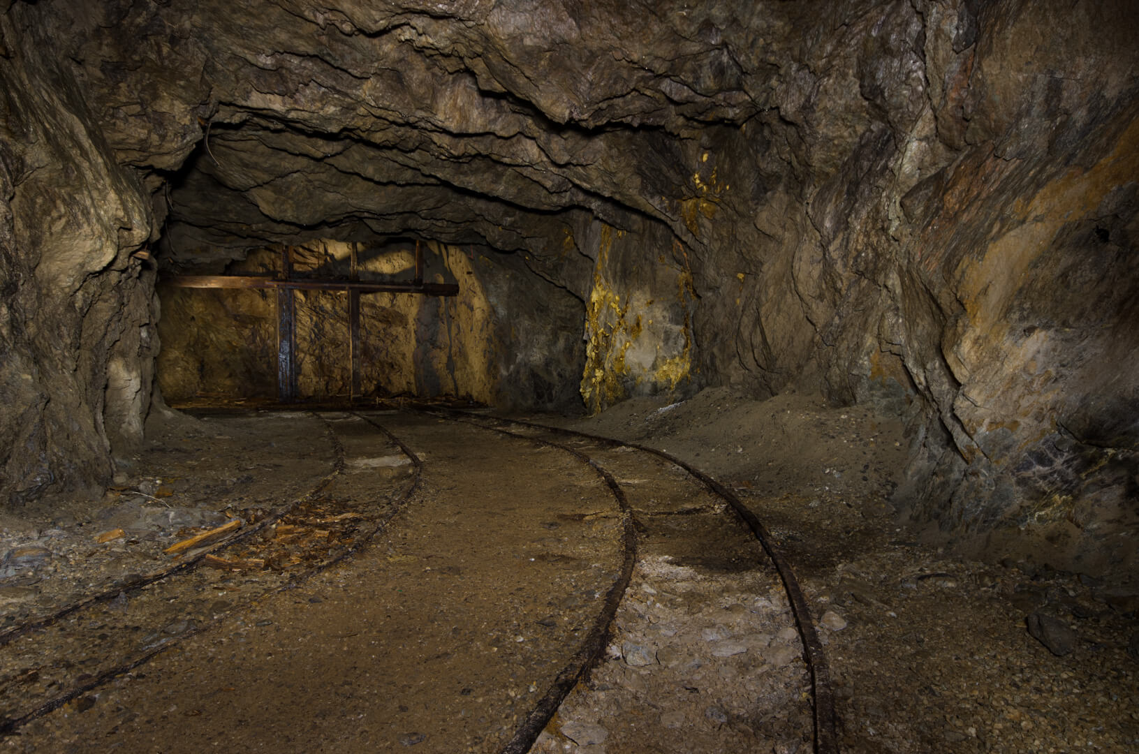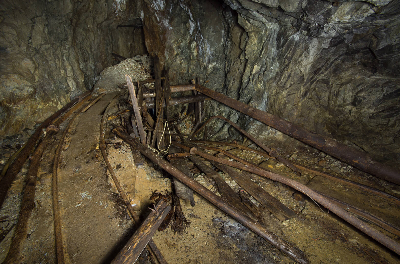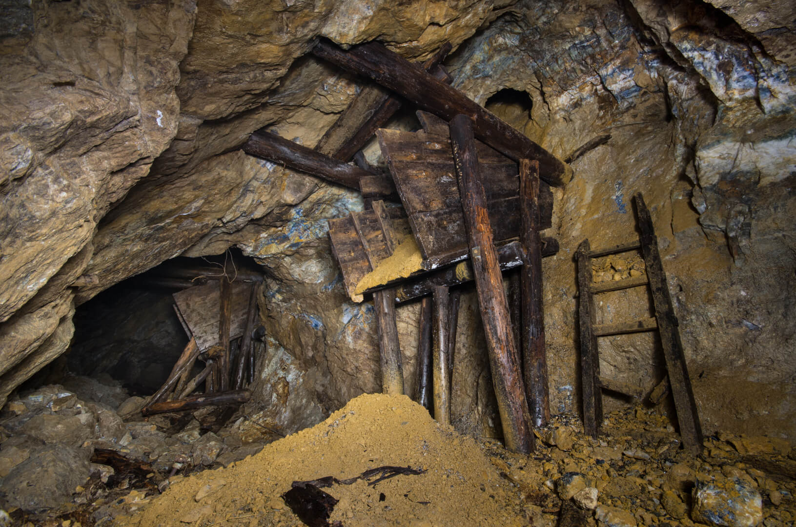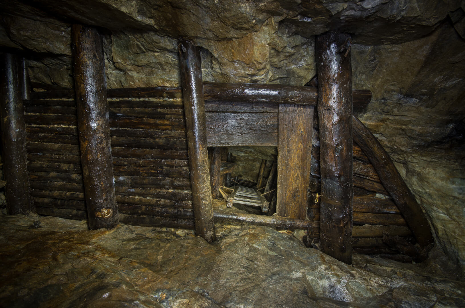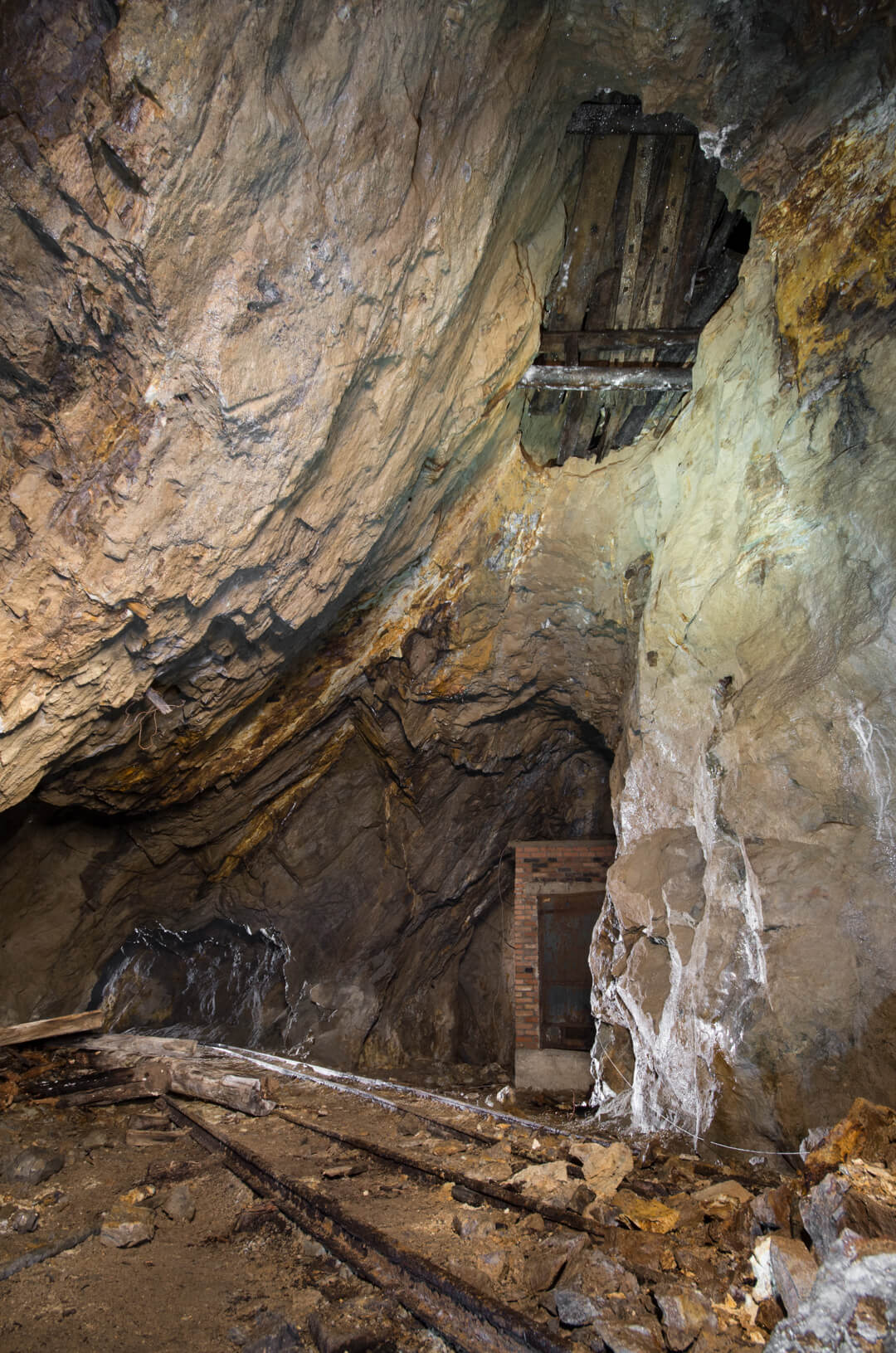 Die gesamte Abseilstrecke bis auf die Stollensohle müsste bei circa 60 Metern liegen. Über den Verhau eingestiegen, seilten wir durch den abgebauten Gang. Die Verhaue lassen sich bis ins 14. Jahrhundert zurückdatieren und führten bereits damals auf Stollen und Abbaue.