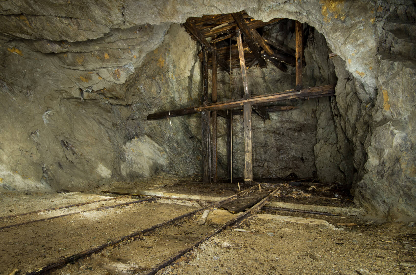 In unmittelbarer Nähe zum tonnlägigen Schacht, der einst alle Sohlen verband, findet sich ein Grubenhunt. Er steht unter einer hölzernen Verladerolle, welche seit Stilllegung der Grube langsam ausläuft. Immer mehr Geröll rieselt zwischen den Hölzern durch und es ist eine Frage der Zeit, bis der Hunt verschwunden ist.