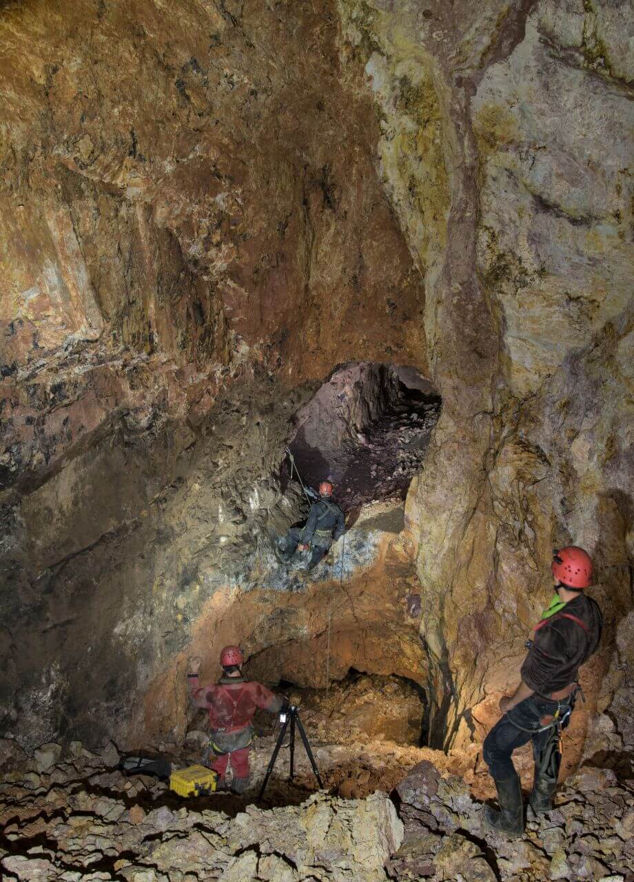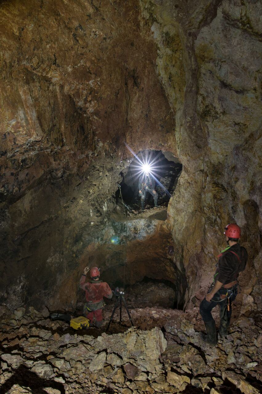Dies war bis jetzt der erste und einzige befahrbare Abbau den wir ausfindig machen konnten. Hier zeigte sich das erste Mal die gesamte Mächtigkeit des Erzgangs der Grube. Ein berauschendes Gefühl an diesem surrealen Platz stehen zu dürfen. Völlig unberührt präsentierte sich uns dieser Bereich. Es ist schwer davon auszugehen, dass die letzten Personen hier oben die Bergmänner bei ihrer letzten Schicht gewesen sein müssen. Seither war hier sicherlich niemand mehr.