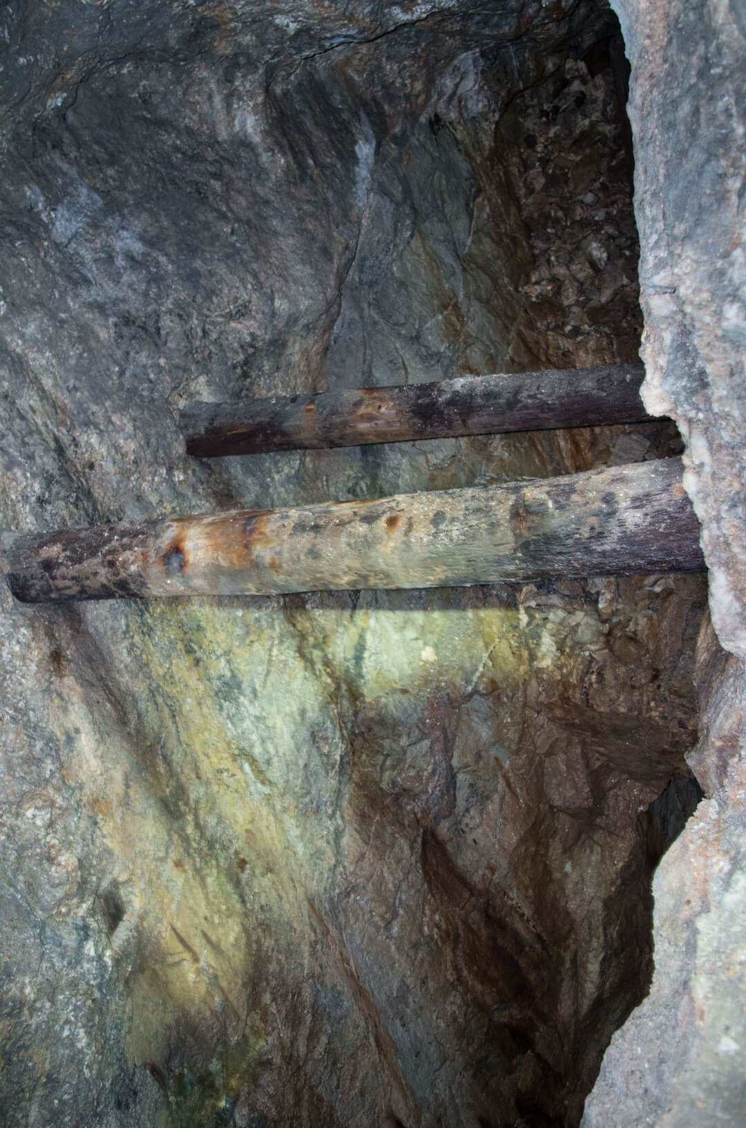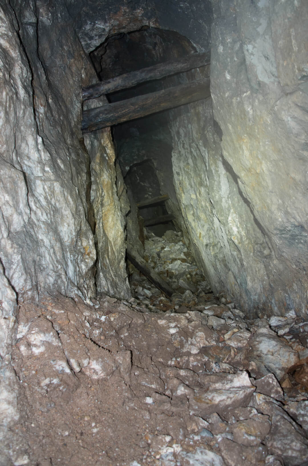 Es war atemberaubend zu sehen, in welchem Ausmaß hier Mineralien wie Quarz, Baryt und Bleiglanzbutzen tief im Berg abgebaut wurden. Teilweise fanden sich noch erhaltene Bühnenhölzer, die einst von den Bergleuten gesetzt wurden. An anderen Stellen sind jedoch nur noch die Kerben im Fels zu erkennen – das Holz ist längst verrottet oder wurde im Laufe der Zeit vom Wasser fortgespült.