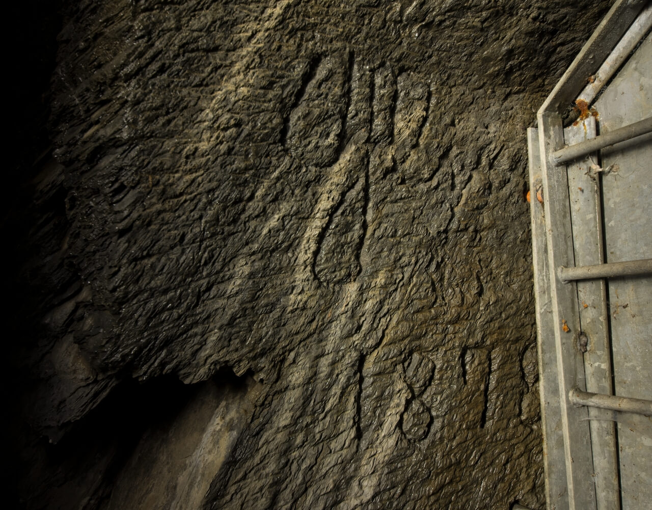 Wie ist es möglich, dass ein Fledermausschutztor direkt über bergbauliche Geschichte gedübelt wird? Es ist kein kleines Gedingezeichen, was weiß Gott mal übersehen werden kann. Nein, die Schrift ist deutlich sichtbar und es wird nicht einmal eine Taschenlampe benötigt. Hier ging es in keinster Weise um bergbauliche Aspekte.