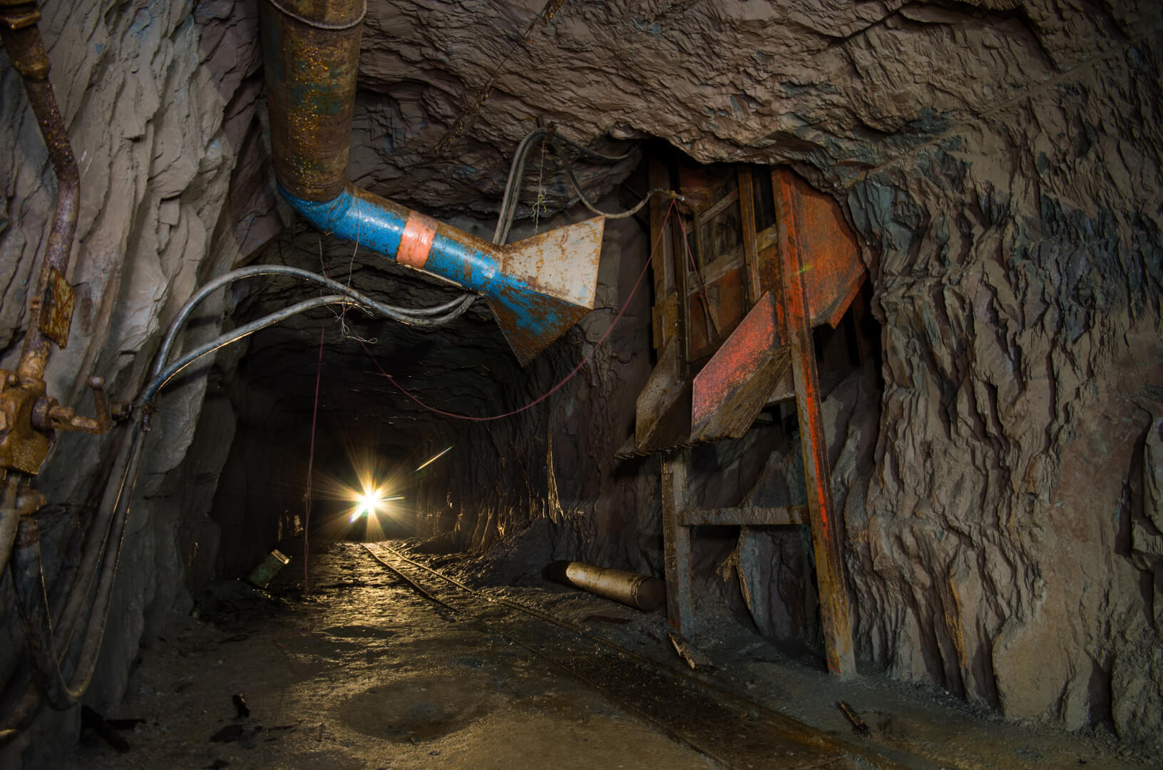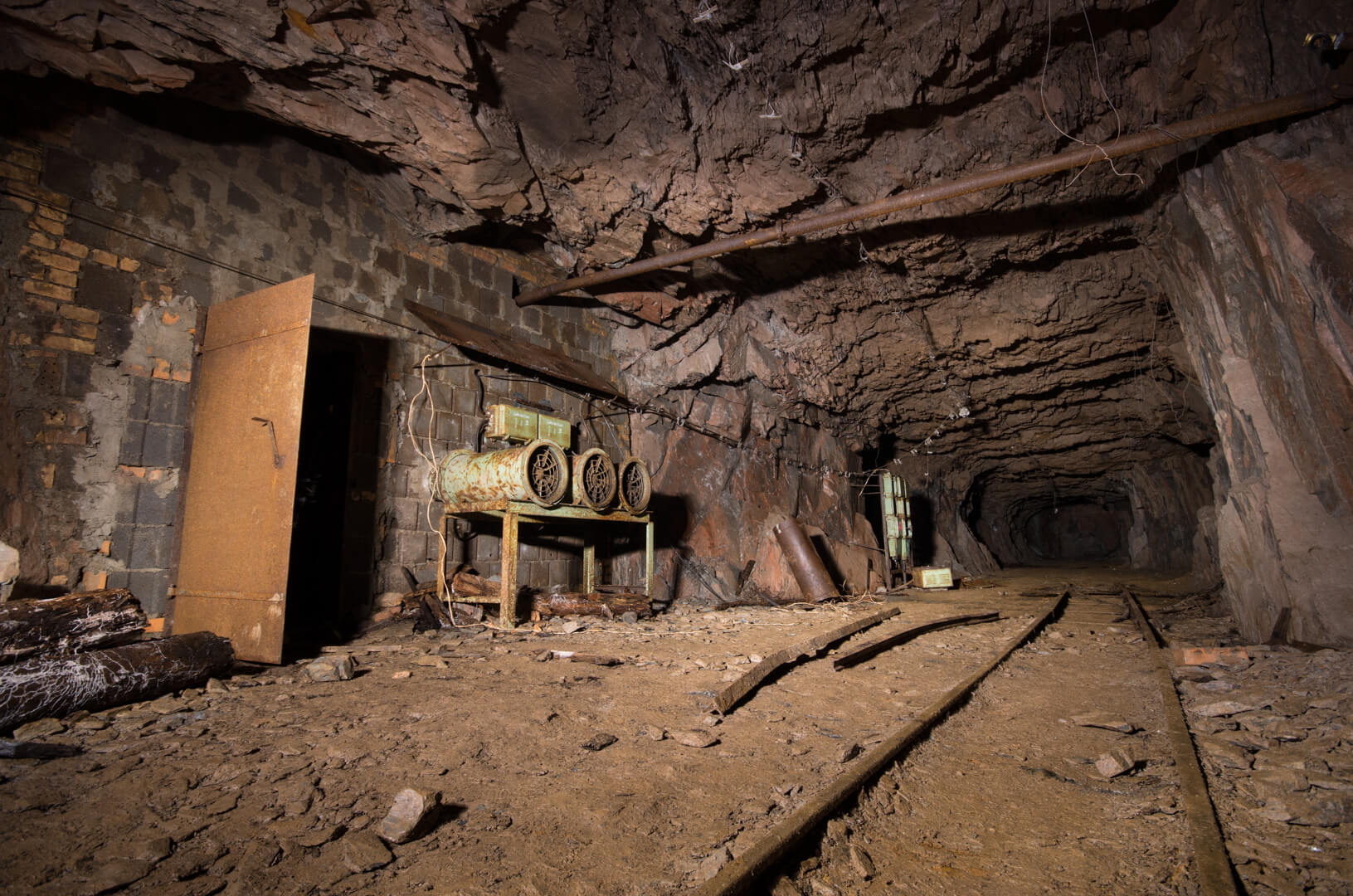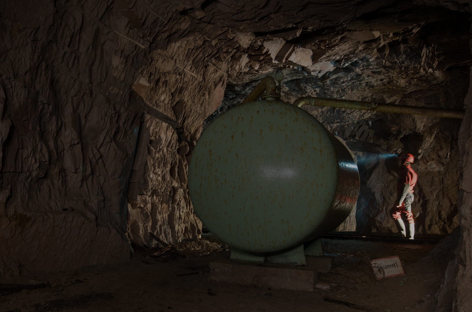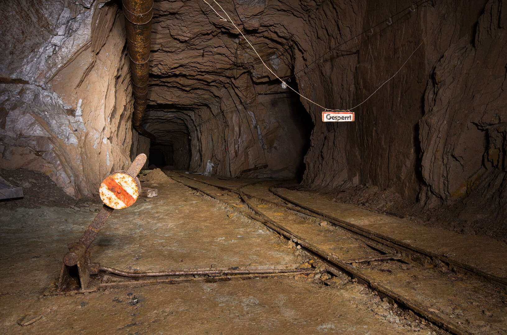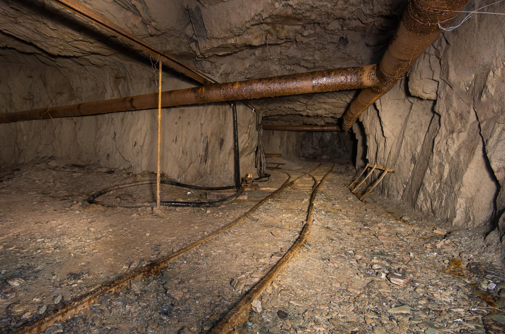 Mit zurückgelassener Abbautechnik wie Überkopfladern, Rollbühnen und Bewetterungsanlagen lässt sich der damalige Grubenbetrieb noch gut nachvollziehen. Ein Überkopflader steht am Ende einer Strecke, direkt vor einem abgesprengten Gesteinsberg, bereit zum Verladen. Man könnte fast meinen, die Bergleute hätten gerade Pause gemacht und jeden Moment würde ein neuer Förderwagen zum Beladen eintreffen.