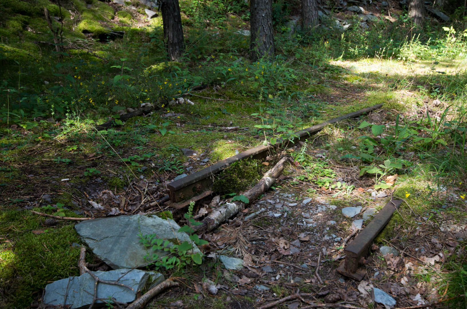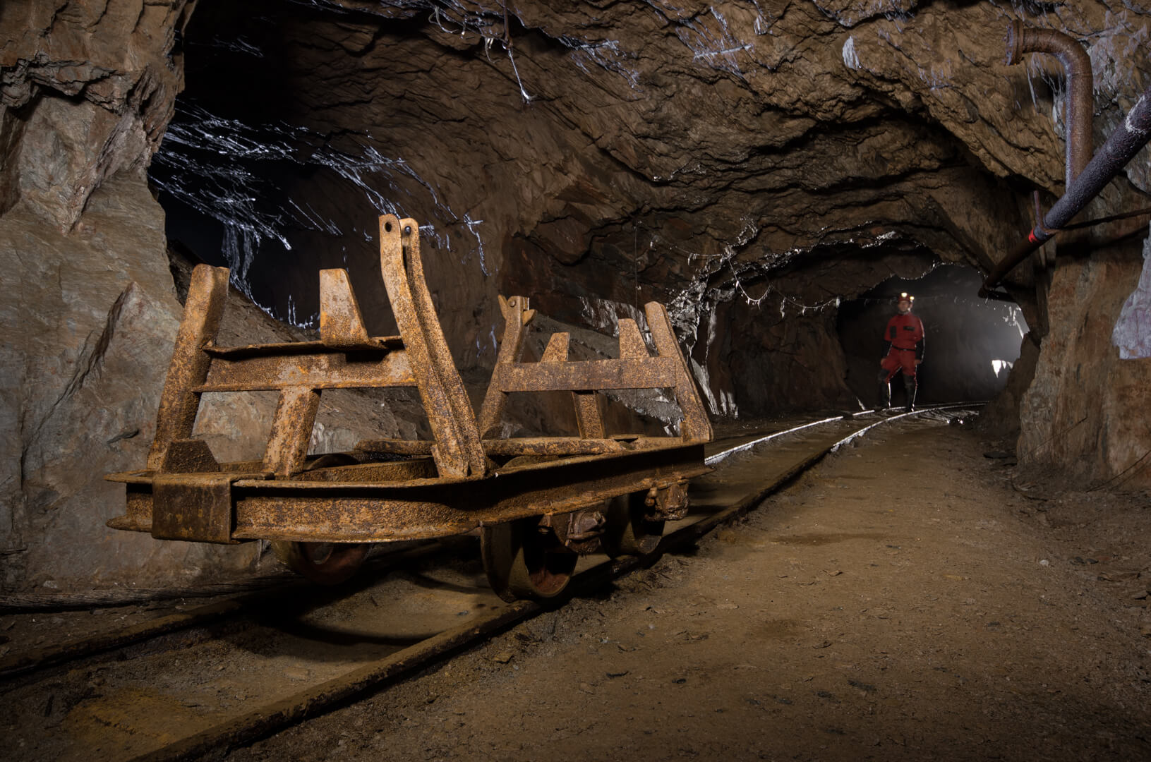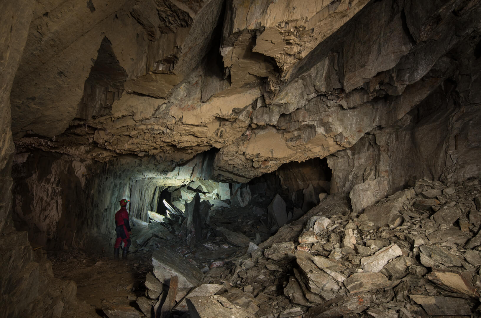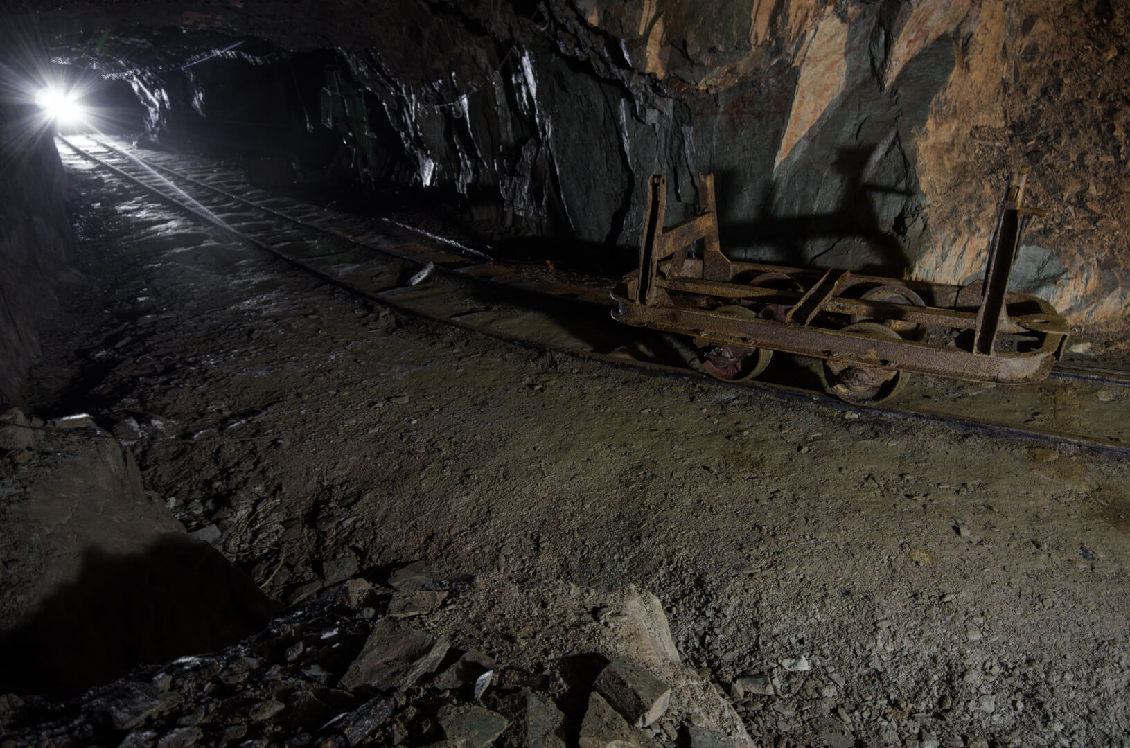 Mit zurückgelassener Abbautechnik wie Überkopfladern, Rollbühnen und Bewetterungsanlagen lässt sich der damalige Grubenbetrieb noch gut nachvollziehen. Ein Überkopflader steht am Ende einer Strecke, direkt vor einem abgesprengten Gesteinsberg, bereit zum Verladen. Man könnte fast meinen, die Bergleute hätten gerade Pause gemacht und jeden Moment würde ein neuer Förderwagen zum Beladen eintreffen.
