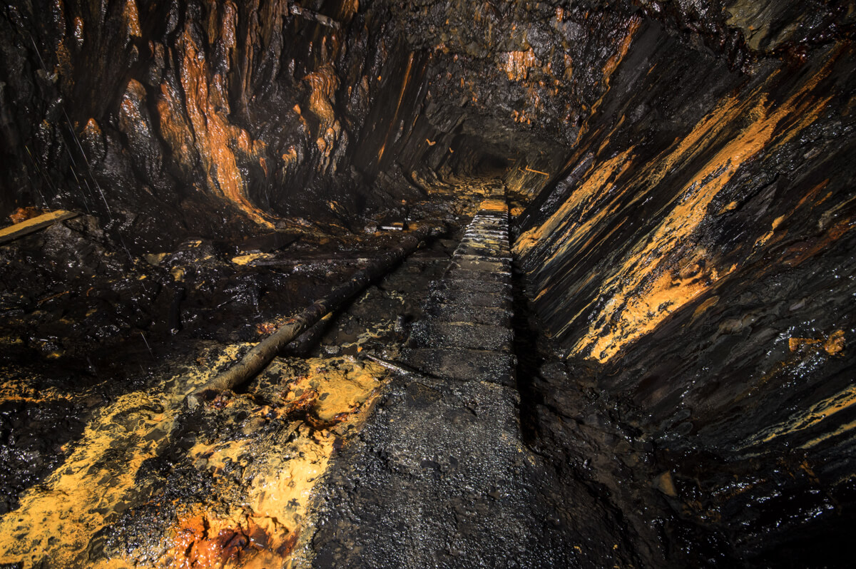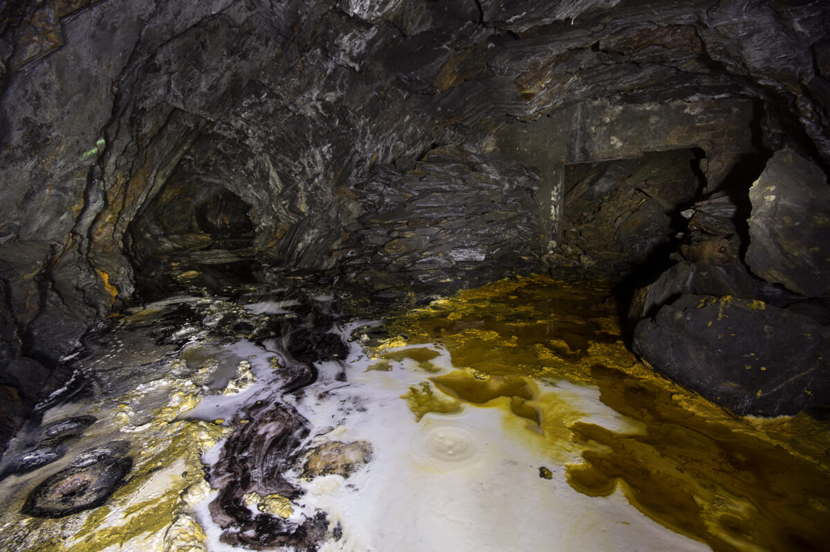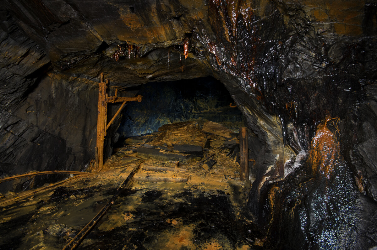 Glatte Schieferwände, bunte Versinterungen und Bremsberge im Schieferbergbau