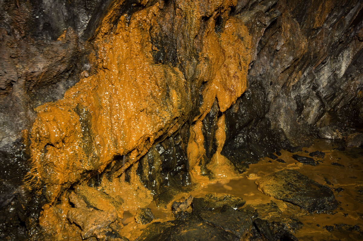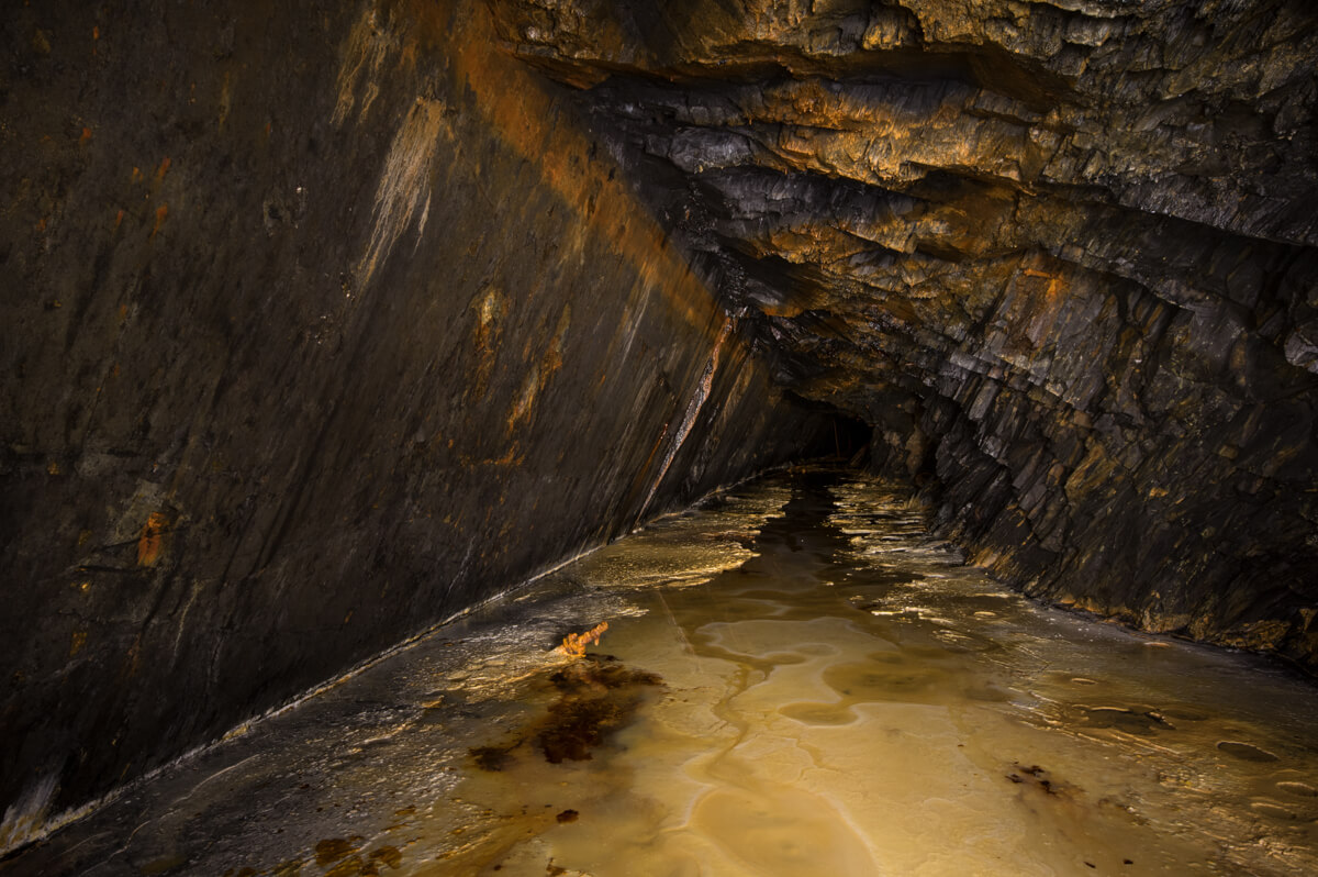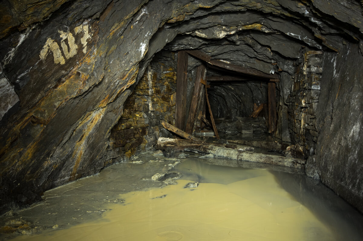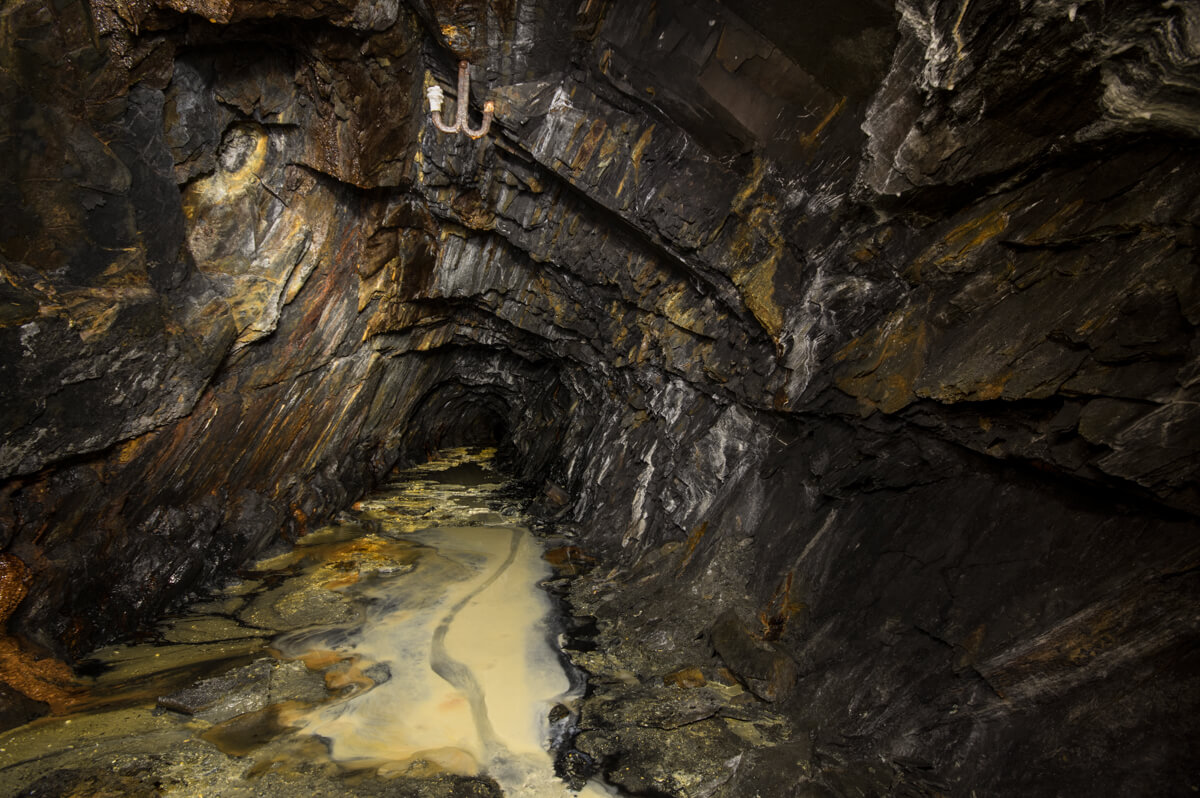 Glatte Schieferwände, bunte Versinterungen und Bremsberge im Schieferbergbau