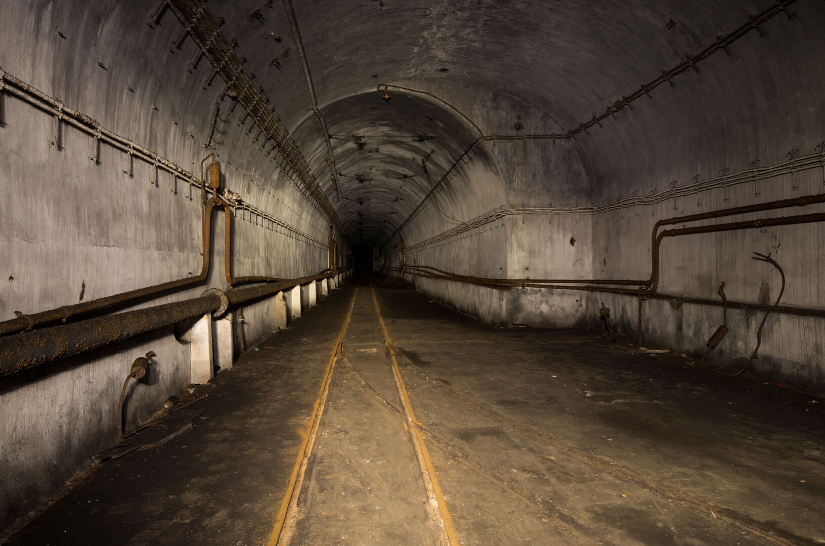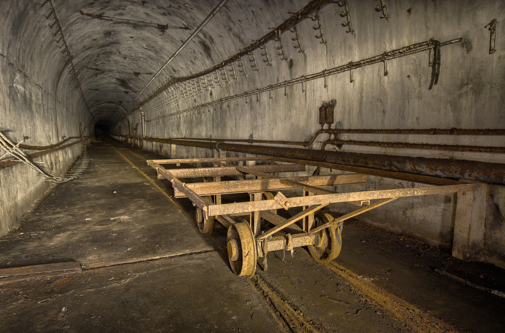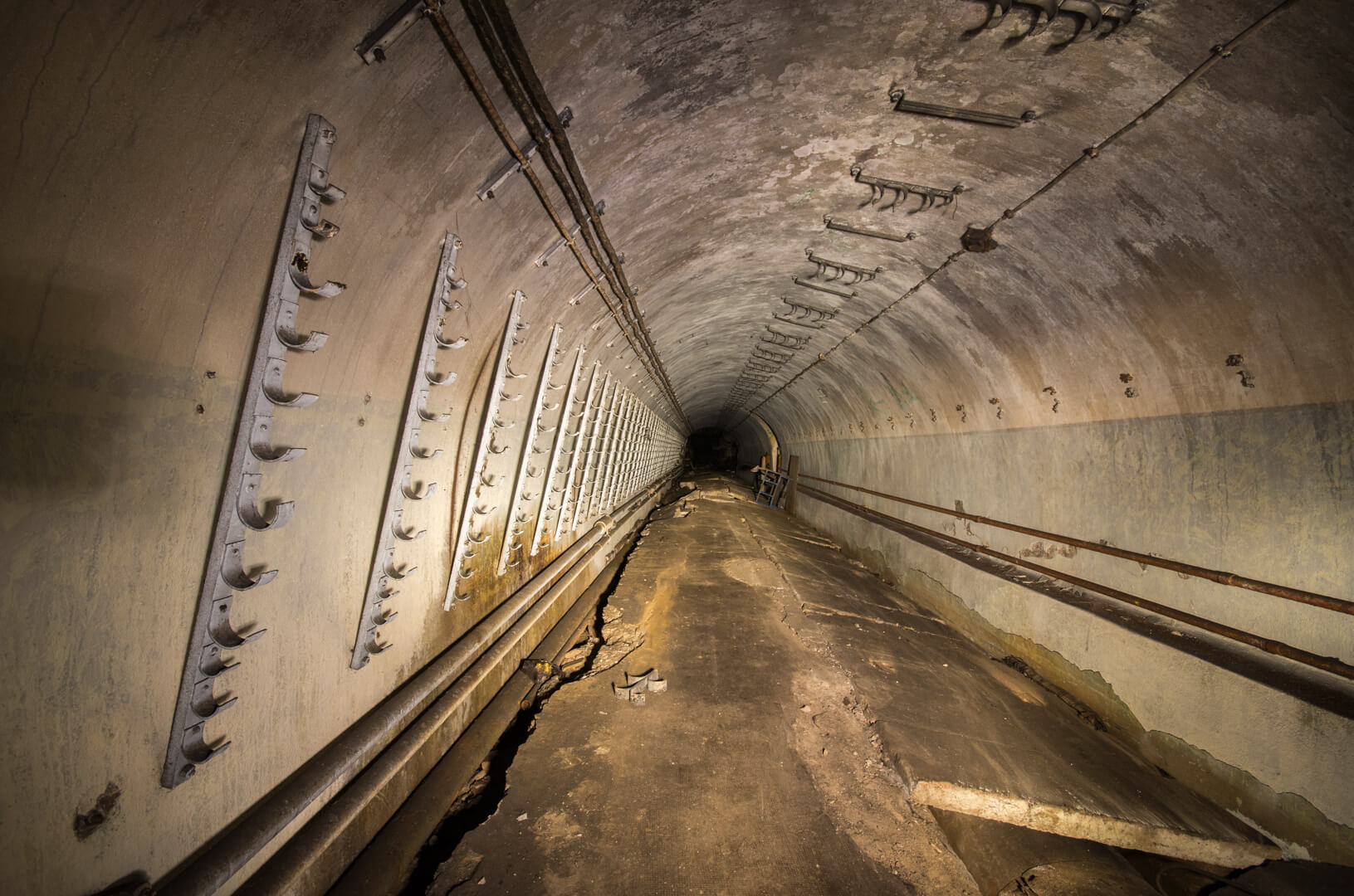 Natürlich stellte sich hier die Frage, wie der Beton eines Bunkers so bersten kann, aber scheinbar bestand das Problem schon während der Betriebszeit des Artilleriewerkes Metrich und die Strecke musste immer wieder ausgebessert werden. Das Problem war ein ganz einfaches: Unter dieser Strecke befindet sich eine natürliche Tonschicht, und diese bläht sich auf, wenn sie mit Wasser in Kontakt kommt. Dadurch wurde der Boden dieser Strecke so extrem angehoben und hat selbst den Bunkerbeton bersten lassen.
