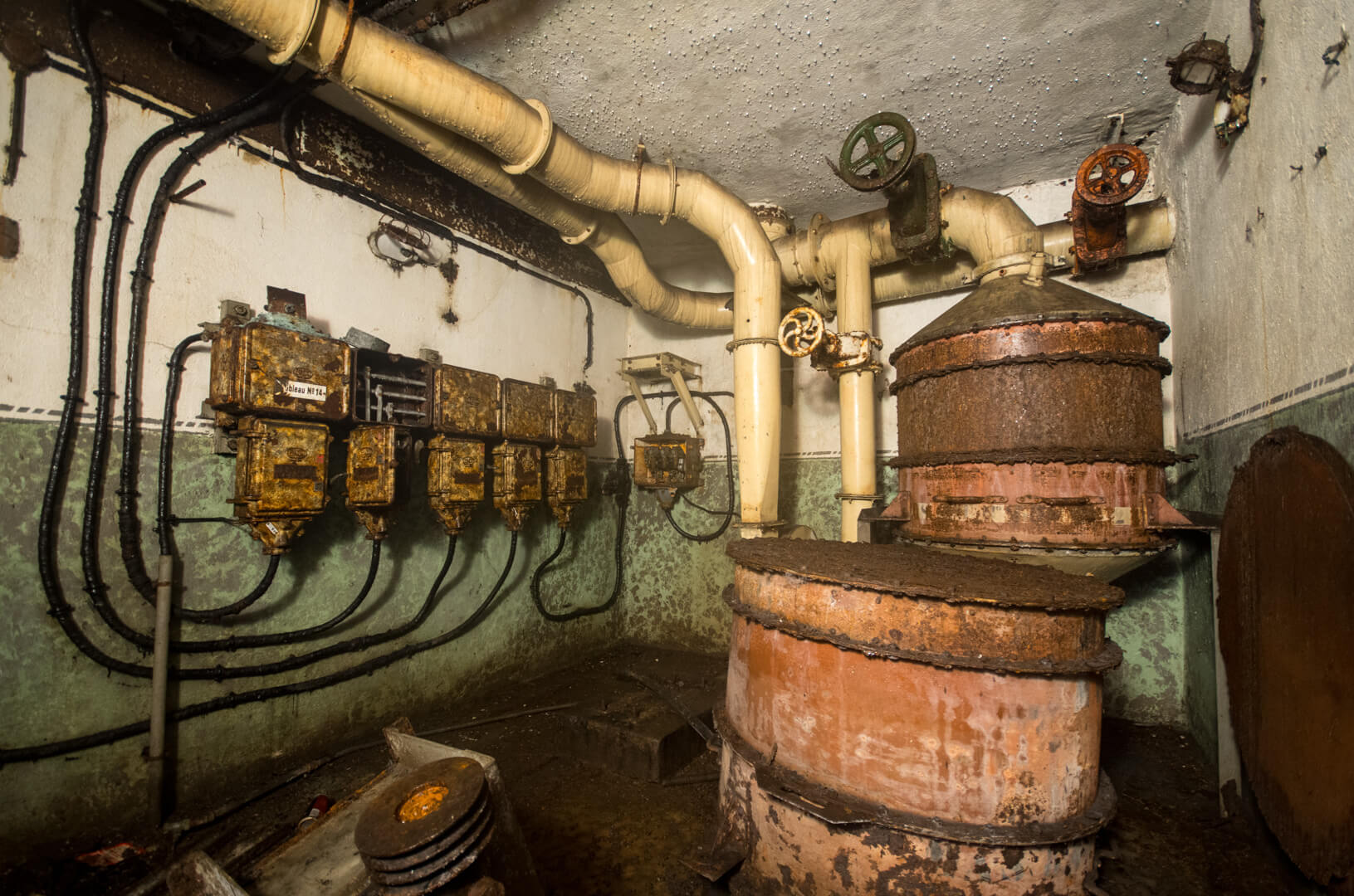 Eines der größten Festungswerke der Maginot Linie, das leider zum größten Teil den Vandalen und Schrotthaien zum Opfer gefallen ist. An vielen Stellen im Artilleriewerk Metrich wurde Feuer gelegt, und das nur, um die geklauten Kabel vom Isolierstoff zu befreien. Für ein paar Euro wurde hier die eigene Geschichte zerstört, sogar das eigene Leben wurde aufs Spiel gesetzt. Ganz besonders hart hat es das Kraftwerk erwischt, dort ist so gut wie alles schwarz.