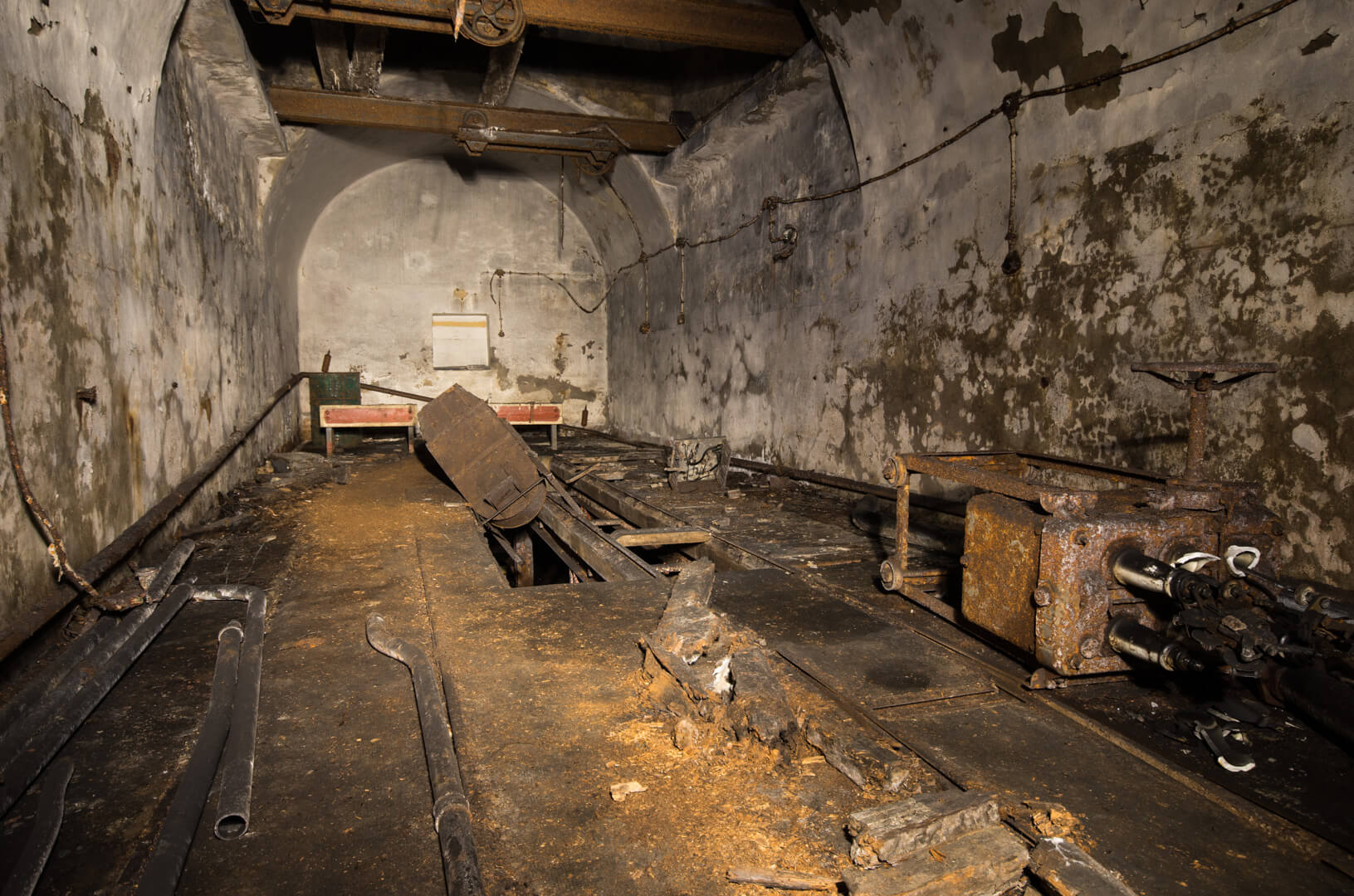 Aber es gibt auch schöne und interessante Stellen im Artilleriewerk Metrich, wie die großen und kleinen Munitionslager mit ihren Munitionskisten und Rollbahnen. Auch die Kampfblöcke mit ihren Türmen sind noch relativ gut intakt und bieten einen guten Einblick in die Funktionsweise. Aber wirklich erstaunt hat mich der Betonboden in einer Verbindungsstrecke. Dieser hatte sich gut 2 Meter nach oben gehoben und war vollkommen zerborsten.
