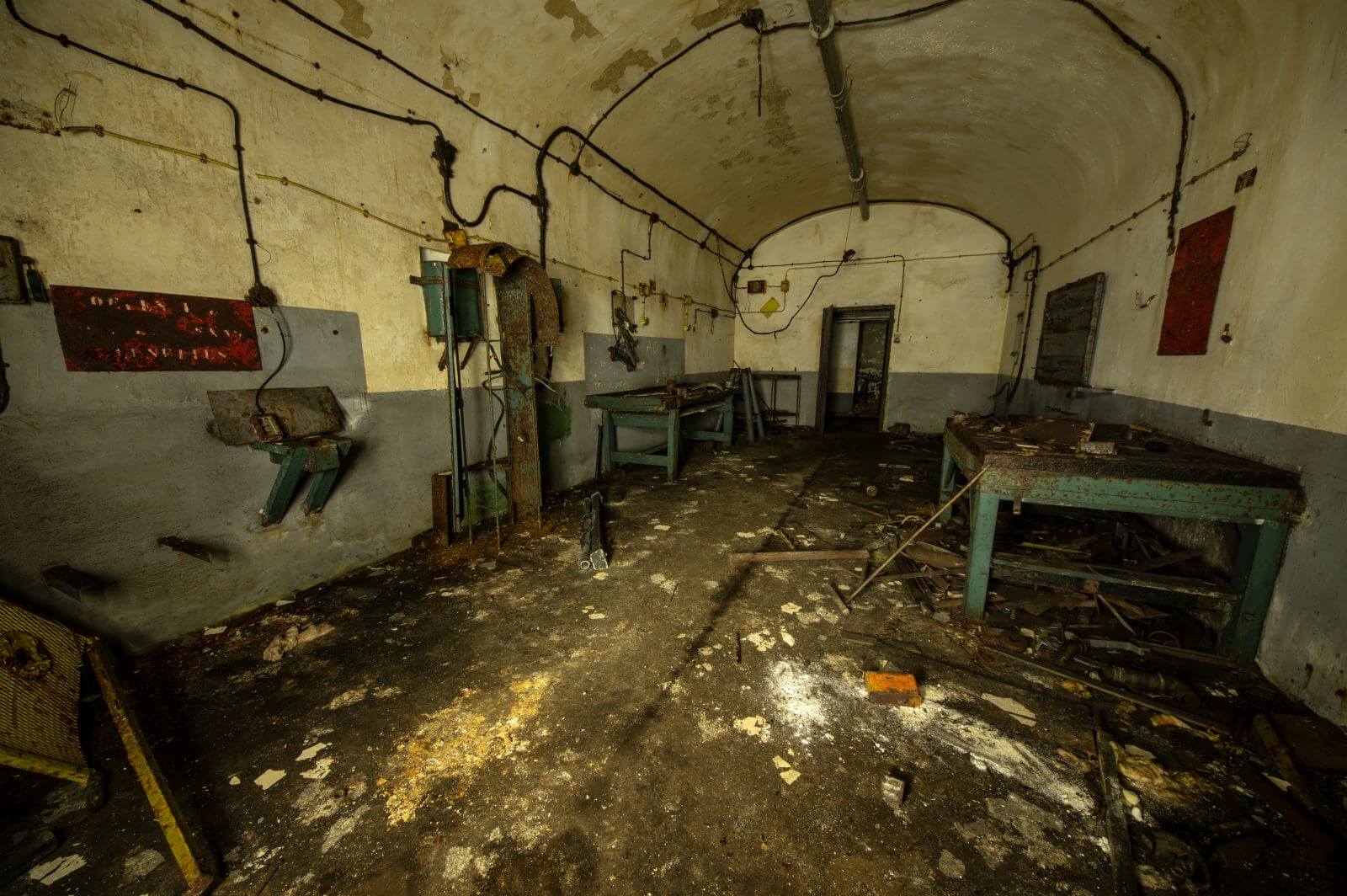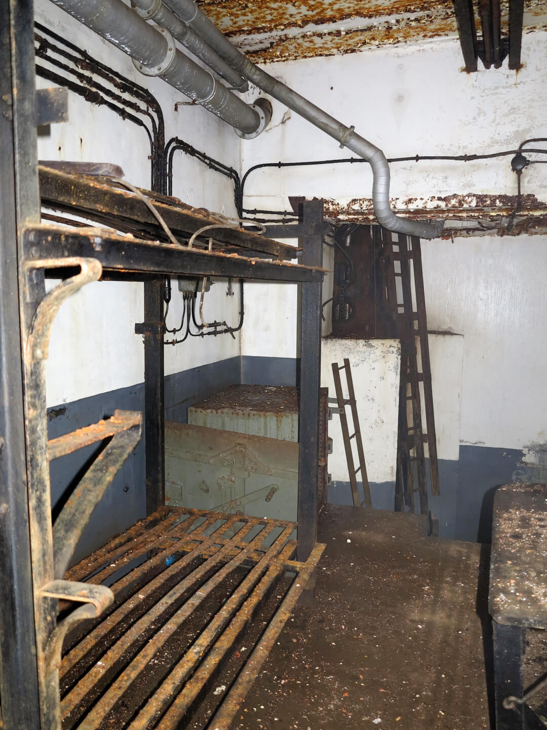 Im Jahr 2018 besuchte ich das Artilleriewerk Schiesseck ein zweites Mal – rückblickend hätte ich darauf lieber verzichtet. Nach dem Ende der militärischen Kontrollfahrten hatten sich Schrotthändler großräumig Zugang verschafft. Sämtliche Kabel wurden herausgerissen und ausgebrannt, um das Kupfer zu gewinnen. Der Rauch zog durch den gesamten Bunker, viele Strecken sind bis heute schwarz vom Ruß. Unwiederbringlich wurde dabei sehr viel zerstört. Ich kann nur hoffen, dass diese Menschen selbst ausreichend Giftstoffe eingeatmet haben.