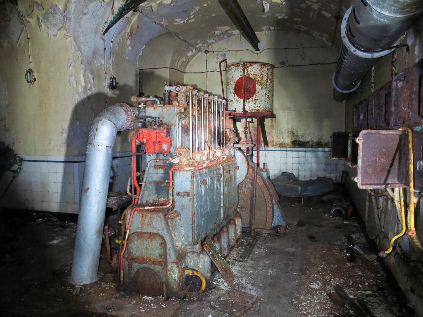 Der Zustand im Jahr 2014 war hervorragend: viel natürlicher Verfall, keine Brandschäden und keine Unmengen an Schmierereien an den Wänden. Ich muss zugeben, dass ich an mancher Stelle leicht überfordert war. Die Tunnel und Gänge schienen endlos. Stahltüren, Stahlbeton und Kriegstechnik, so weit der Lichtkegel reichte. Noch heute komme ich ins Schwärmen, wenn ich an diesen unglaublichen Bunker zurückdenke. Es war eine legendäre Tour durch die Unterwelt, dazu mit wunderbarer Begleitung.