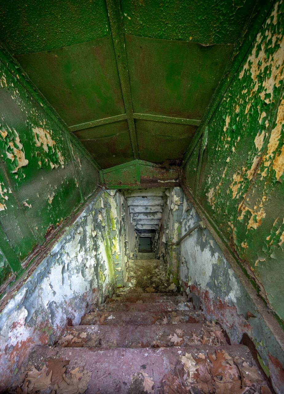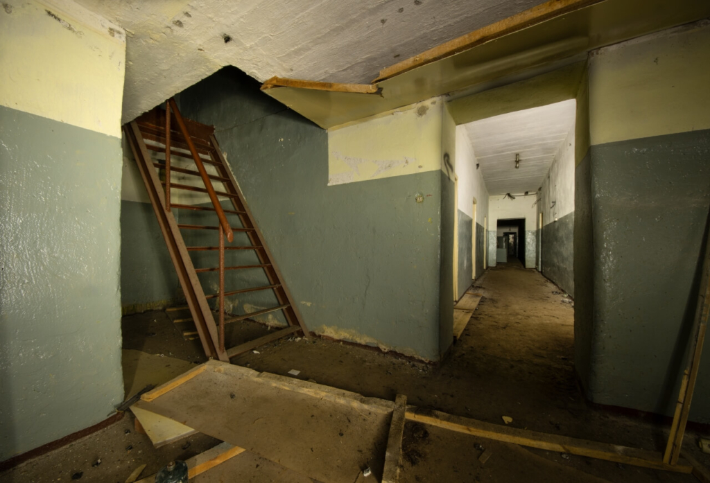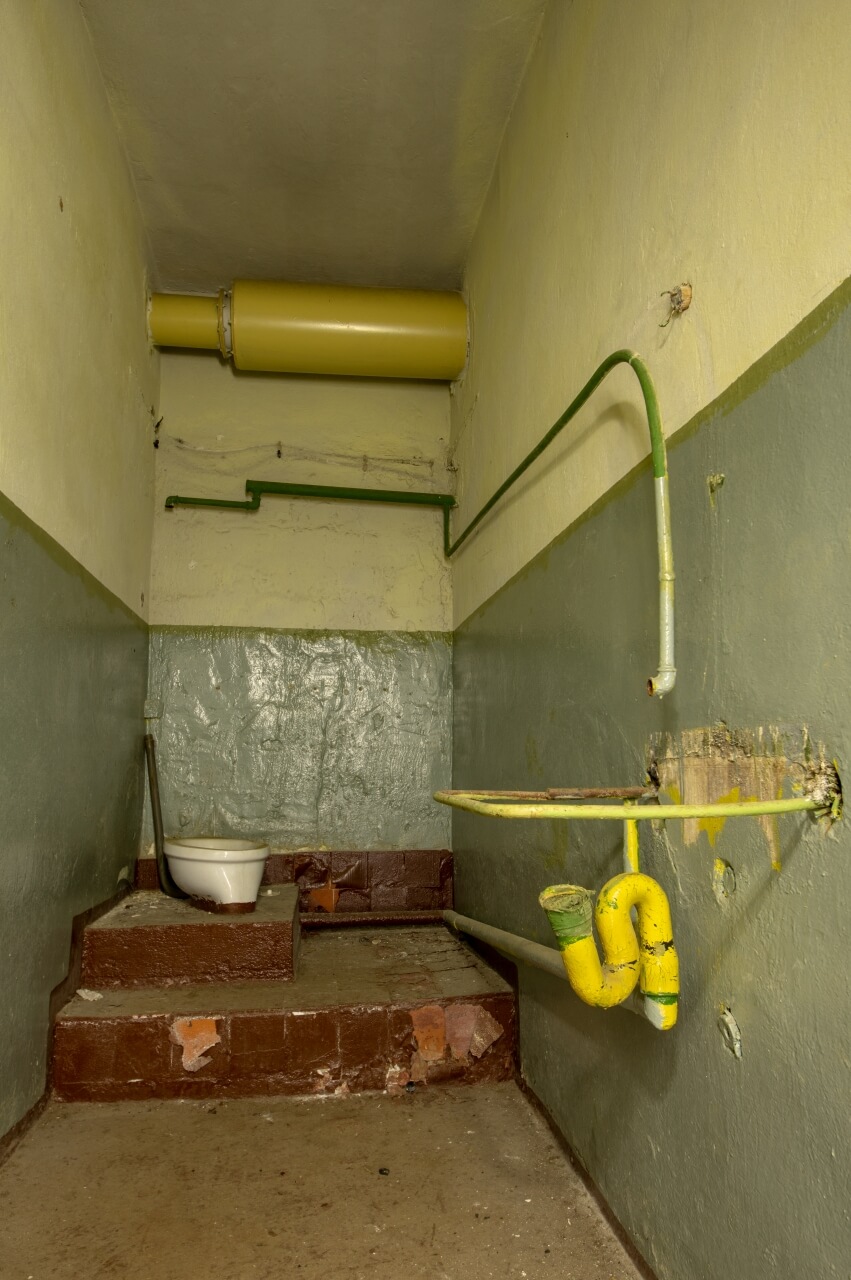 Im Inneren der Bunkeranlage zeigt sich der gleiche entkernte Zustand wie bei den meisten Bunkeranlagen der GSSD. Kabel und Schaltanlagen wurden entfernt, der benachbarte Bunker für die Netzersatzanlage verfüllt. Alle Räumlichkeiten sind leer, lediglich die Filterventilationsanlagen und die Toilette sind erhalten geblieben. Der Bunker diente als Gefechtsführungszentrum der rückwärtigen Führungsstelle der 1. Westfront. Erbaut wurde dieser in den 60er-Jahren und mit einer Grundfläche von circa 780m² ist die Anlage kein Winzling. Die Bauart ist monolithisch und der Mittelbau 2-stöckig.