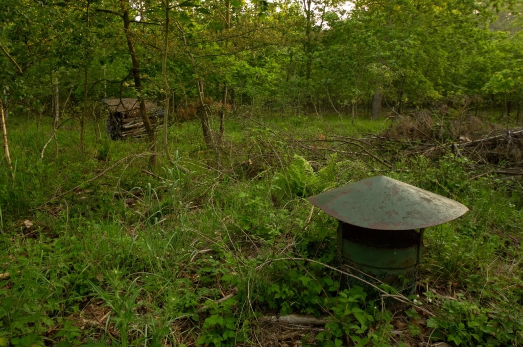 Seit Jahren tief im Wald versteckt, entzieht sich dieser Bunker unterm Holzstapel den neugierigen Blicken. In der unmittelbaren Umgebung deutet so gut wie nichts auf die unterirdische Anlage hin. Bei meinem letzten Besuch im Jahr 2007 war die Vegetation noch üppiger. Jetzt im Jahr 2019, ist die Vegetation etwas lichter und man erkennt auch überirdisch die Abmessungen der Anlage. Beide Zugänge sind mit getarnten Zugangsbauwerken überbaut und im Gelände finden sich ausschließlich die Luftansaugungen sowie das Abluftbauwerk.