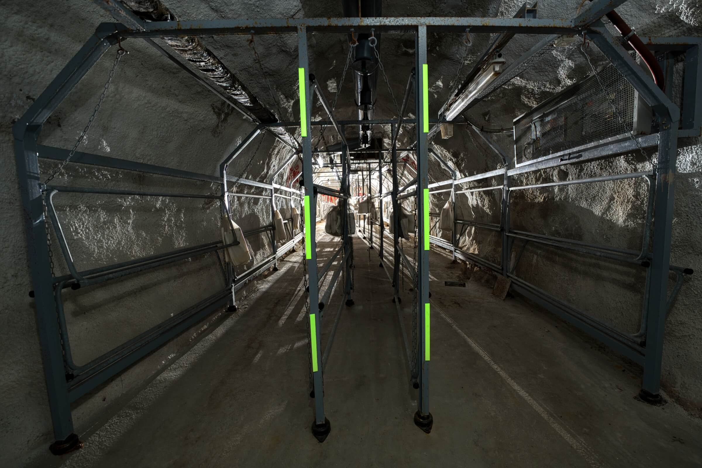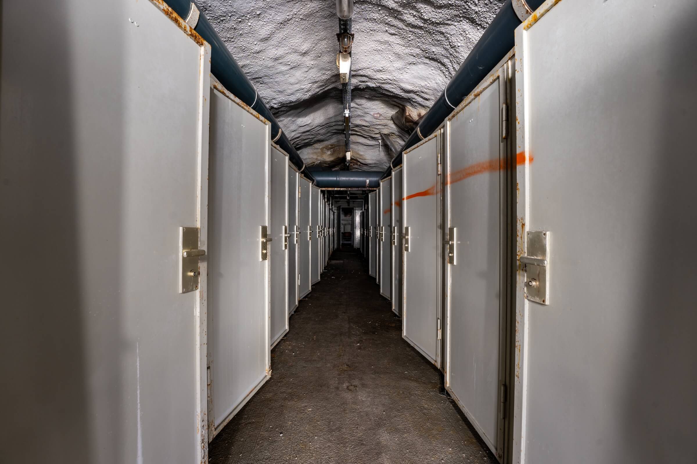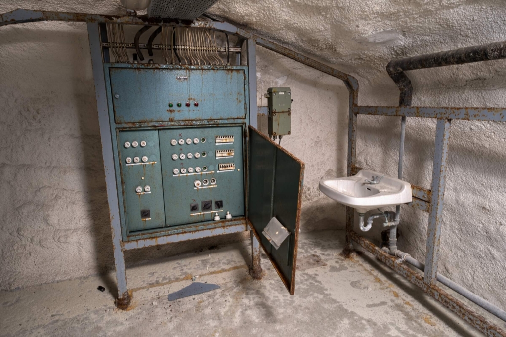 Während die atomare Bedrohung im Kalten Krieg allgegenwärtig war, wurde diese Stollenanlage für atomare, biologische und chemische Angriffe ausgelegt. Auf rund 7000 Quadratmetern hätten bis zu 5000 Menschen im Ernstfall 30 Tage lang Schutz gefunden. Die Anlage ist in drei voneinander unabhängige Abschnitte gegliedert, jeweils mit eigener Stromversorgung über Schiffsdiesel, die zusammen über 120 000 Liter Kraftstoff bevorraten konnten. Zwei Brunnen und drei Wasseraufbereitungen sicherten die Trinkwasserversorgung.