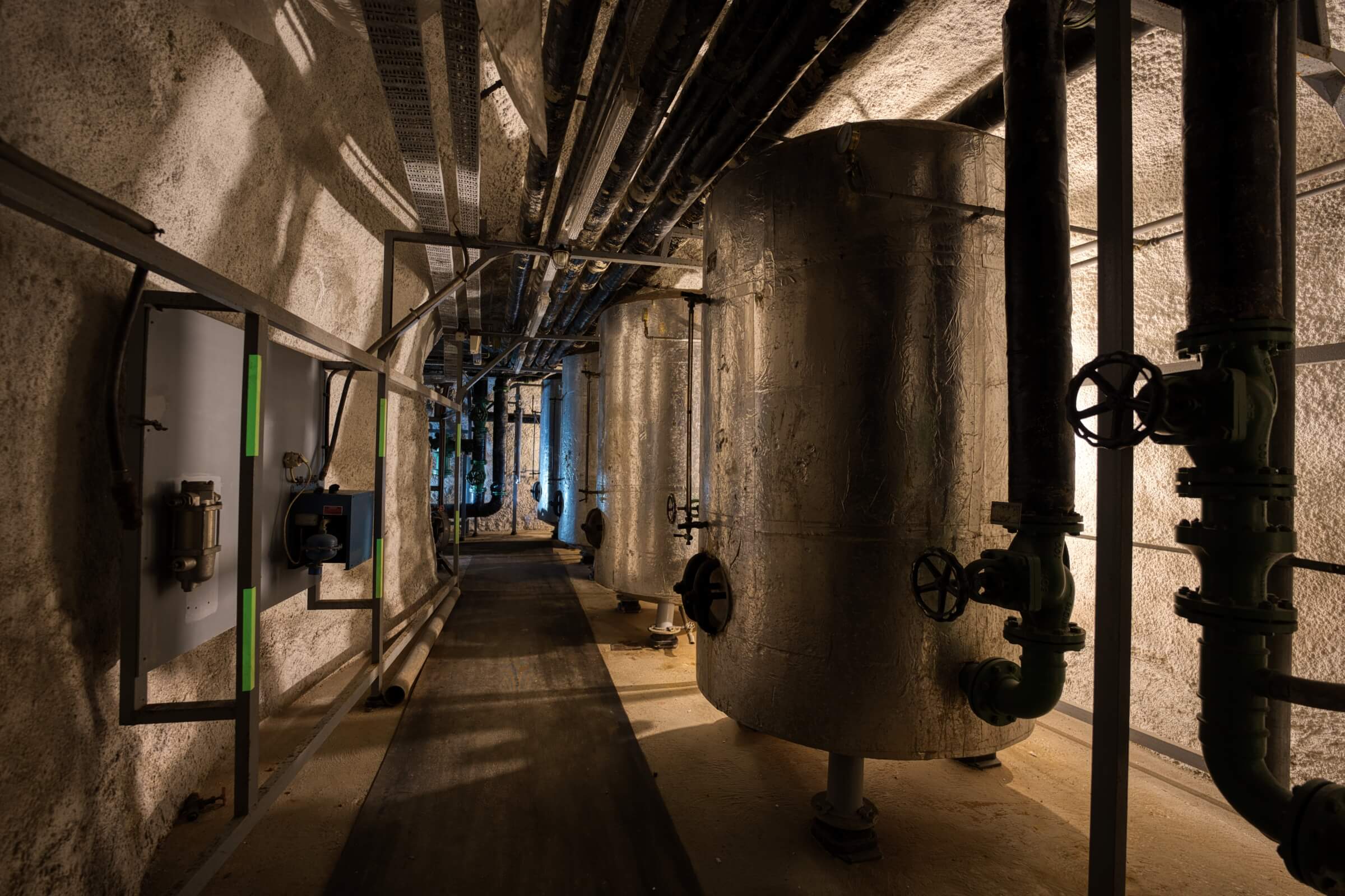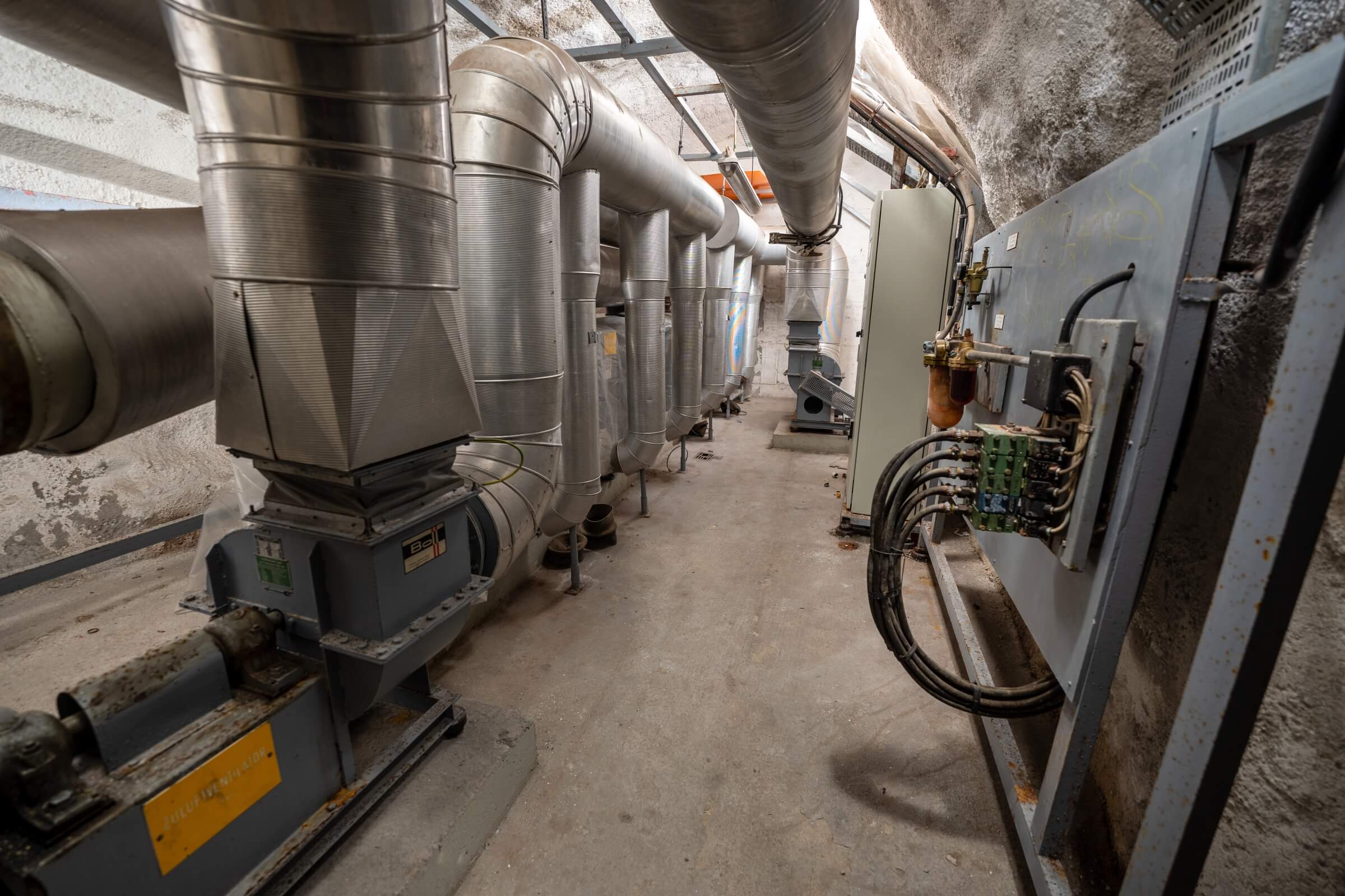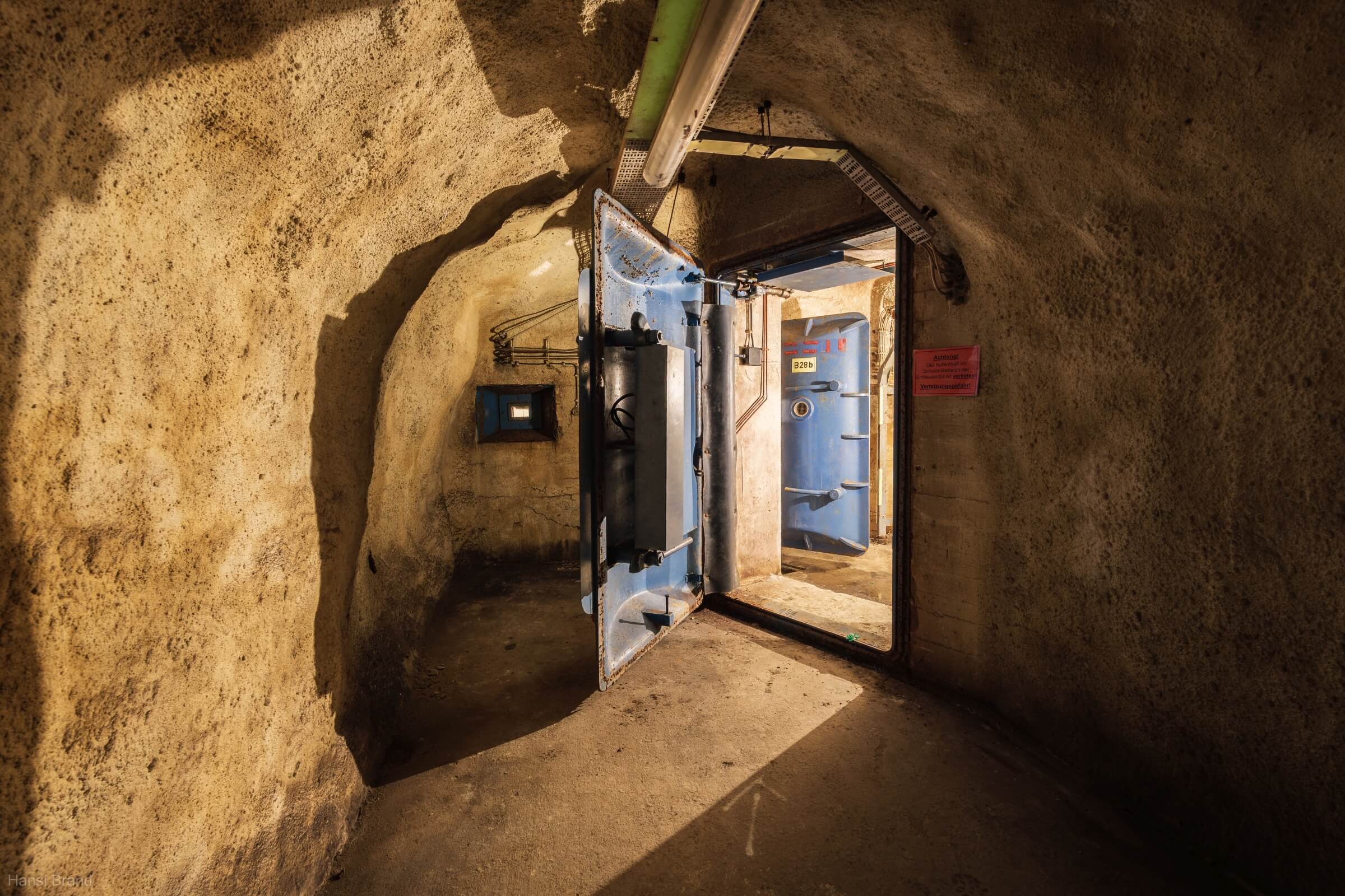 Während die atomare Bedrohung im Kalten Krieg allgegenwärtig war, wurde diese Stollenanlage für atomare, biologische und chemische Angriffe ausgelegt. Auf rund 7000 Quadratmetern hätten bis zu 5000 Menschen im Ernstfall 30 Tage lang Schutz gefunden. Die Anlage ist in drei voneinander unabhängige Abschnitte gegliedert, jeweils mit eigener Stromversorgung über Schiffsdiesel, die zusammen über 120 000 Liter Kraftstoff bevorraten konnten. Zwei Brunnen und drei Wasseraufbereitungen sicherten die Trinkwasserversorgung.