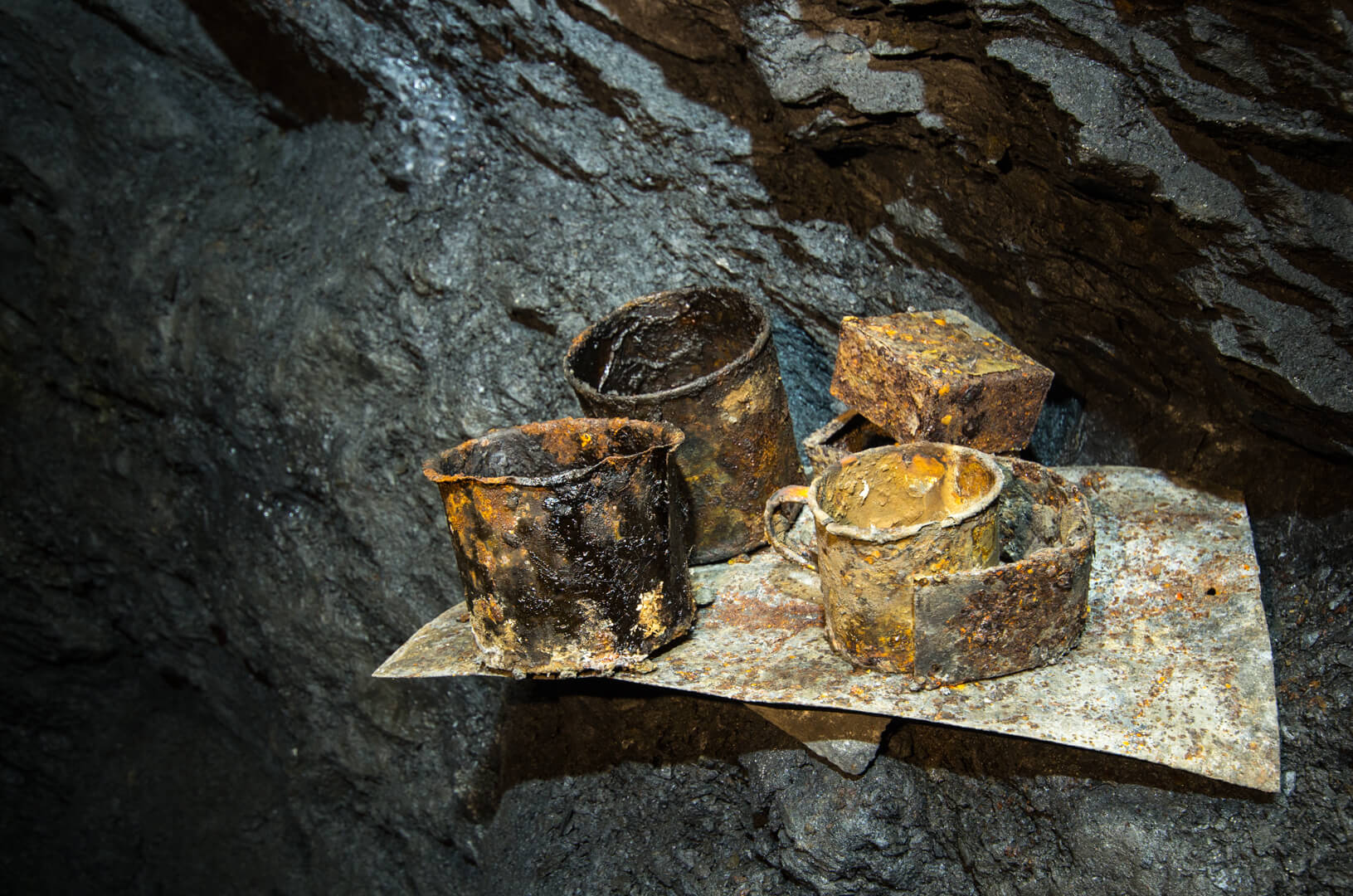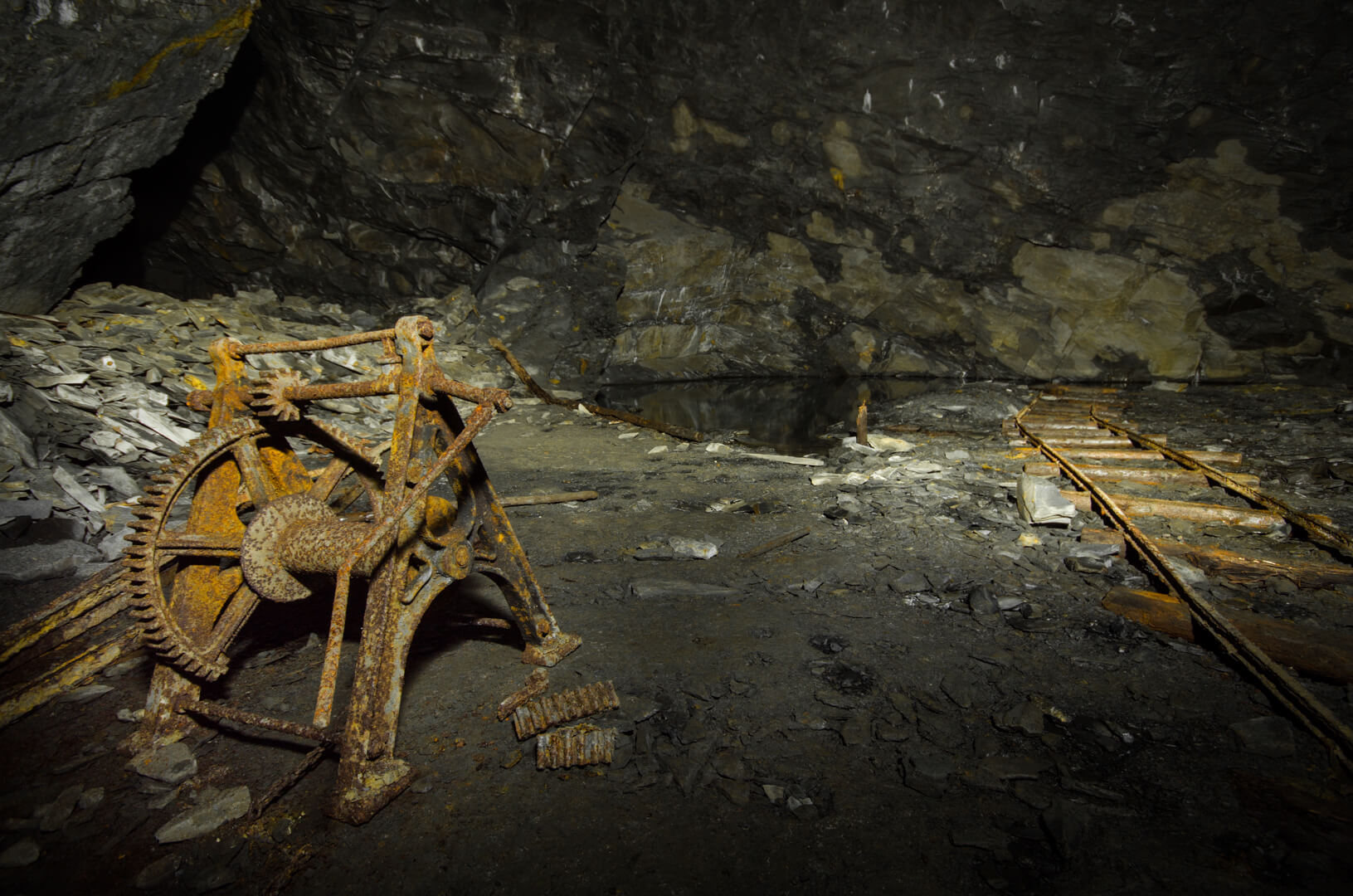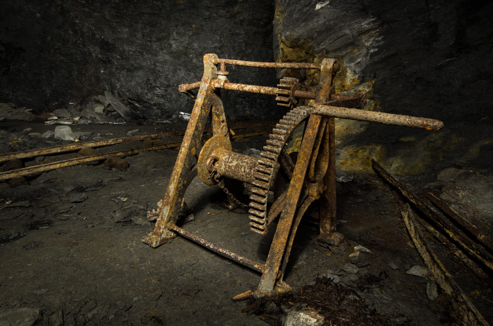 Sehr interessant war auch die alte Haspel, die von Hand betrieben werden konnte. Nach Einstellung des Grubenbetriebs wurde sie zurückgelassen und steht noch heute in der großen Kammer, zwischen Gleisen und dem kleinen blauen See. Im weiteren Streckenverlauf fand sich zudem eine alte Sprengstoffkiste, und auch in den einzelnen Grubenabschnitten waren noch einige Relikte zu entdecken.