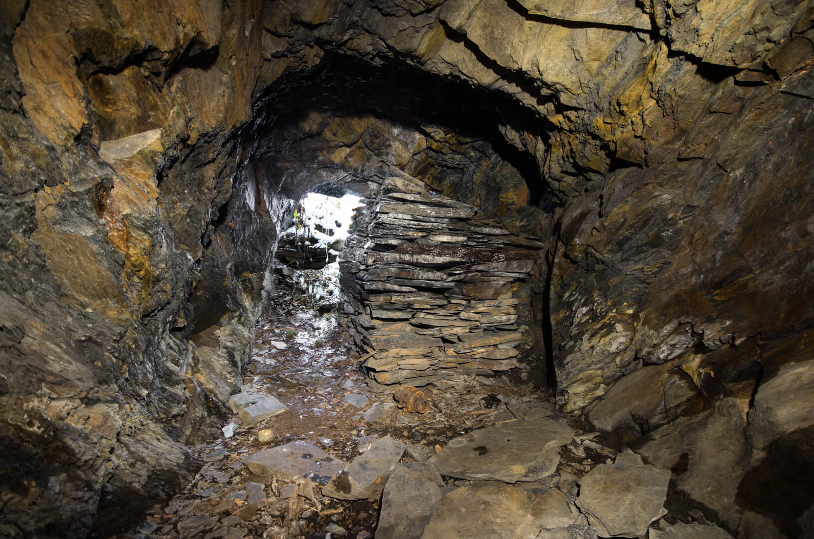 Die Schieferhalden sind riesig und die Tagebaue aus längst vergangenen Zeiten mächtig. Dennoch gibt es augenscheinlich mehr Halde als Tagebau, Stollen und Hohlbaue. Da stellt sich mir die Frage, wo das ganze Material herkommt, welches hier die riesigen Halden bildet? Ganz einfach, die Stollen und Strecken summierten sich einst auf einige hundert Meter. Doch die Regierung der DDR veranlasste die Operation “Schlupfwinkelbeseitigung“ und ließ viele Stollen und Mundlöcher des alten Bruchs sprengen oder anderweitig verschließen. Durch die grenznahe Lage der Grube hatte die DDR Führung Angst, dass die alten Stollen als Fluchttunnel benutzt werden könnten oder sich Subkulturen im Untergrund entwickeln. So sind viele Mundlöcher auch anderer Gruben und Untertage-Verlagerungen im Umfeld einfach gesprengt worden und verschwunden.